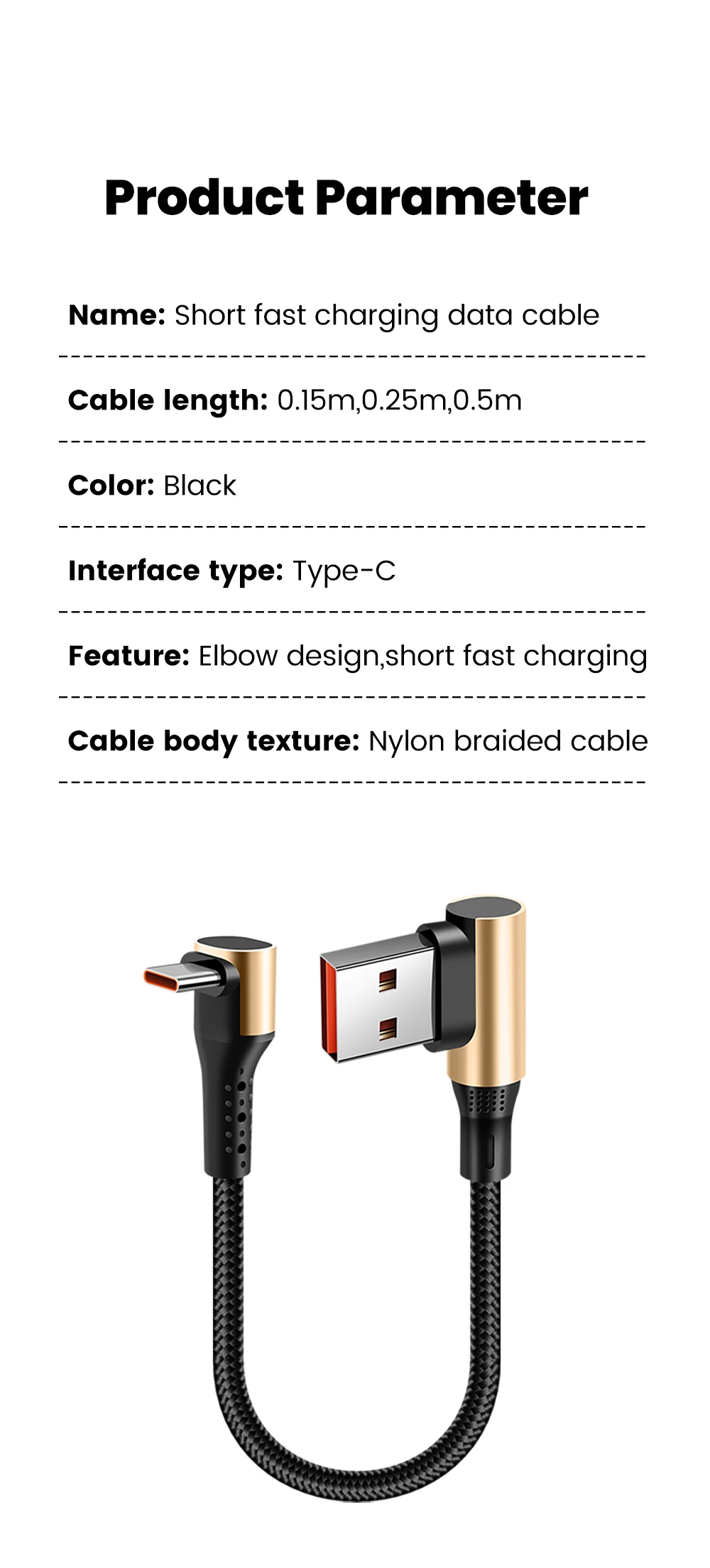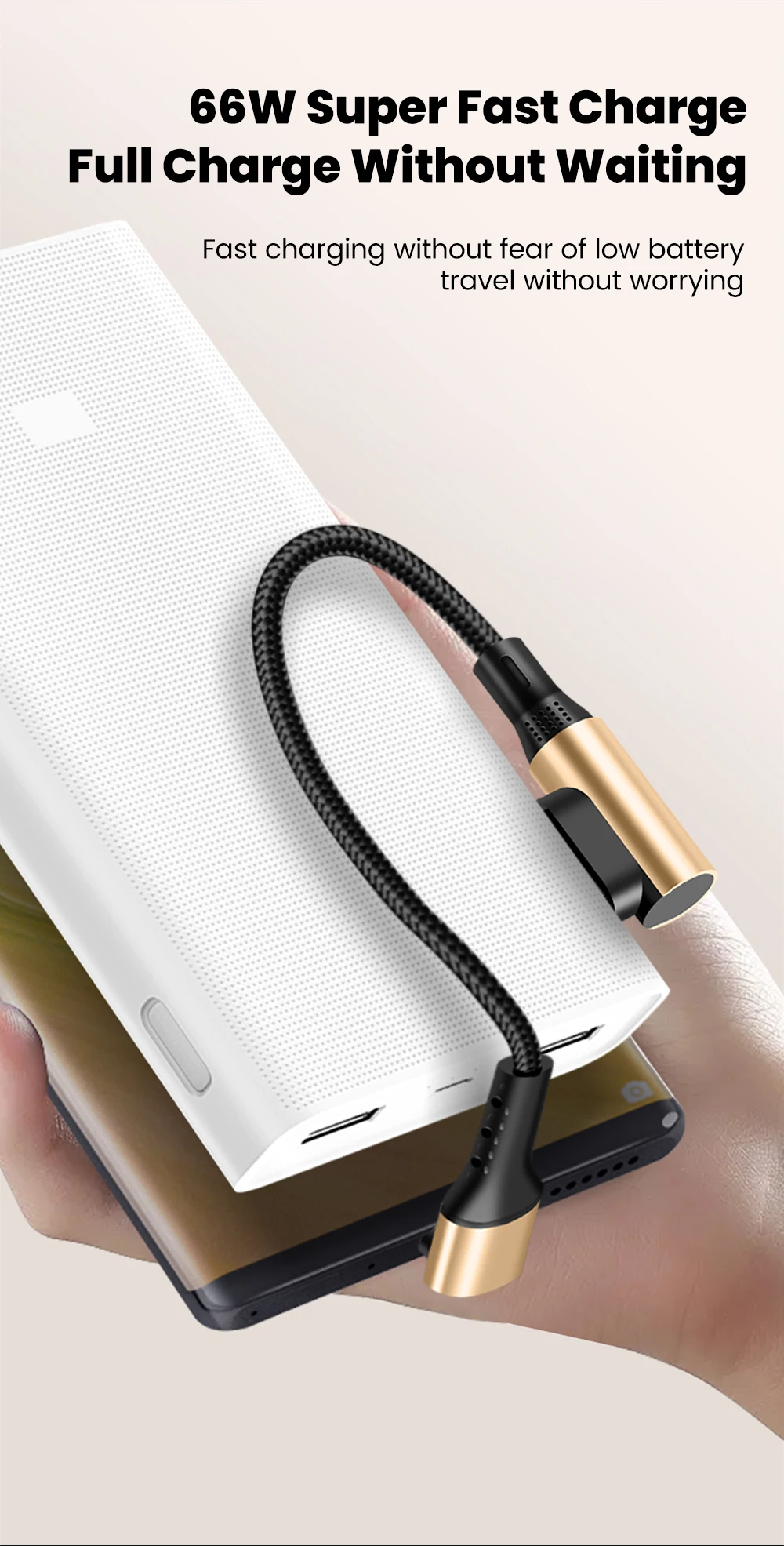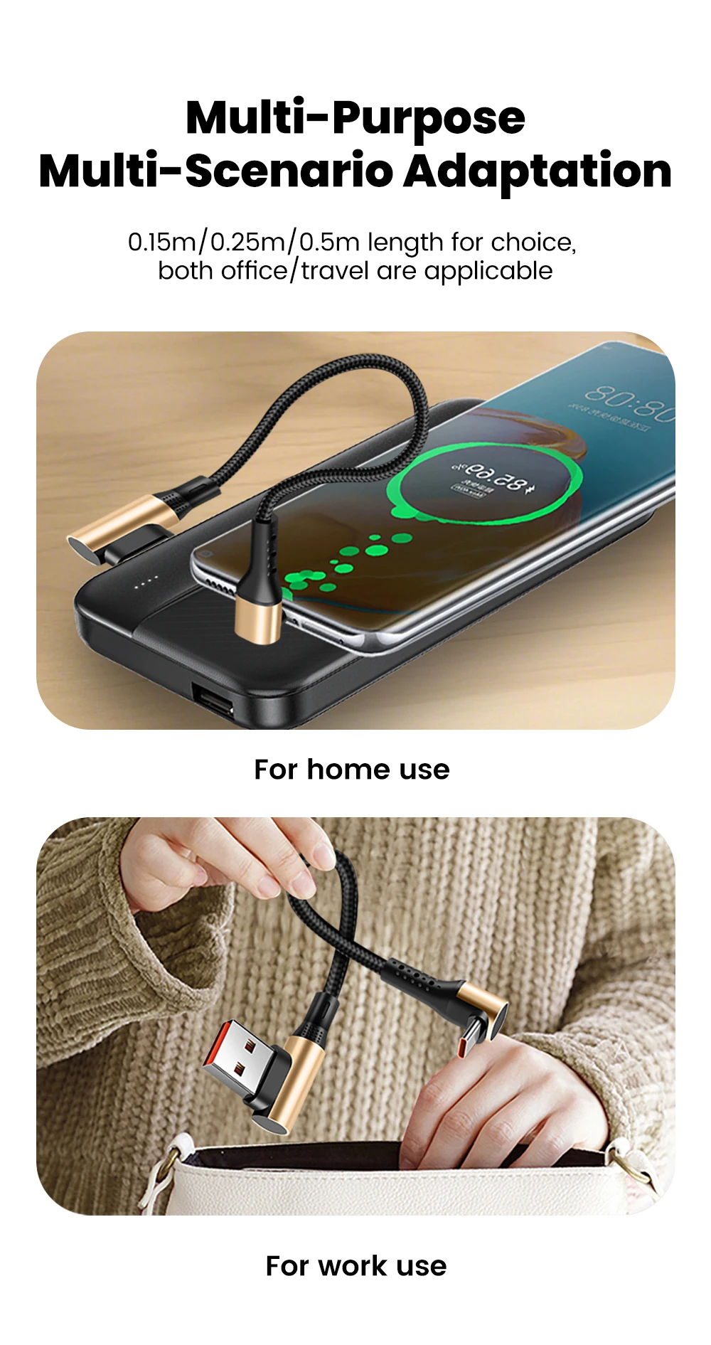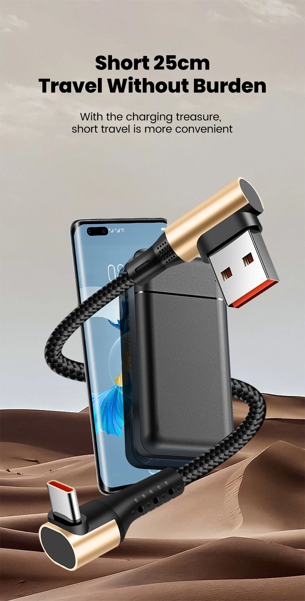 Cable corto de 66W, 0,15 M, 0,25 M, 0,5 M, codo de 90 grados, Cable USB A a tipo C, Cable de carga rápida para iPhone 15 16, batería externa Samsung