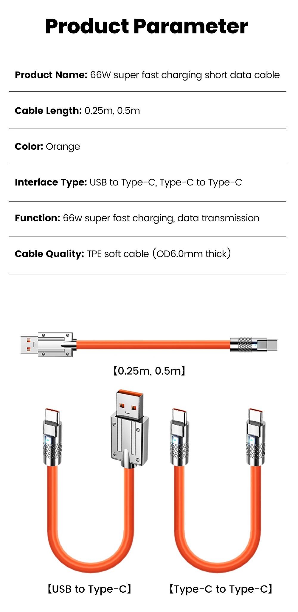 Comprar Cable corto de 66W, 25CM, 50CM, Cable USB tipo C a tipo C, Cable de datos de carga súper rápida para iPhone 16 15, Cable USB C para banco de energía