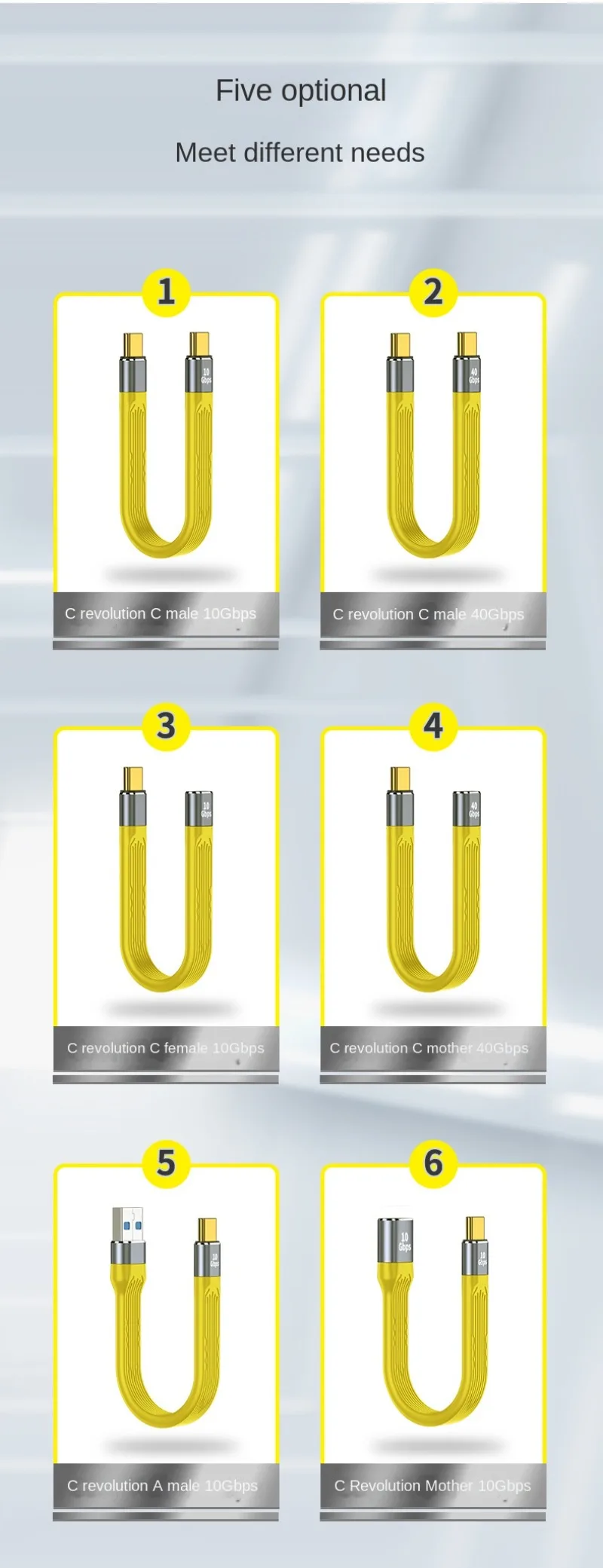 Característica: 1.100 W de alta potencia, carga rápida real: admite carga rápida de alta potencia de 20 V/5 A 100 W. 2.Cuerpo de alambre resistente, no es fácil de romper: la colcha exterior está hecha de material FPC de alta resistencia, que es suave y fácil de almacenar, y la salida del cable es más fácil. 3.Carga y transmisión 2 en 1: conéctese a un disco duro móvil, transmita datos a la velocidad de la luz, transmita datos a una velocidad de la luz de hasta 10/40 Gbps y tenga compatibilidad con versiones anteriores. 4.Ligero y portátil: la longitud del cable es de solo 13,8 cm, un pequeño cable corto, que se puede transportar y guardar fácilmente en bolsillos y bolsos digitales.Viaja contigo, sin cargas y resuelve los problemas desordenados causados por líneas largas. 5.Ámbito de aplicación: teléfono móvil tipo C, caja de disco duro, banco de energía, tableta. Especificación: Uso: computadora, almacenamiento móvil Tipo de USB: USB 3.1 tipo C Número de modelo: Cable de datos Nombre del producto: cable de datos flexible tipo C FPC Tipo: Tipo C macho a Tipo A macho 10 Gbps, Tipo C macho a Tipo A hembra 10 Gbps, Tipo C macho a Tipo C macho 10 Gbps, Tipo C macho a Tipo C hembra 10 Gbps, Tipo C macho a Tipo C macho 40 Gbps, Tipo C macho a Tipo C hembra 40 Gbps (opcional) Color del producto: Amarillo Material del producto: aleación de aluminio + colcha exterior FPC. Material del cuerpo: TPE engrosado Potencia del producto: 20V@5A(100W) Velocidad de transmisión: 10 Gbps/40 Gbps (opcional) Entrada y salida: Tipo-C/USB Ámbito de aplicación: teléfono móvil tipo C, caja de disco duro, banco de energía, tableta Función del producto: carga, transmisión. Longitud del producto: 13,8 cm/5,43 pulgadas Paquetes: 1 cable de datos USB C.