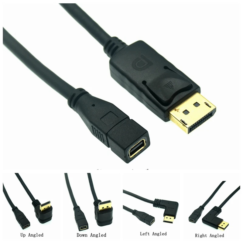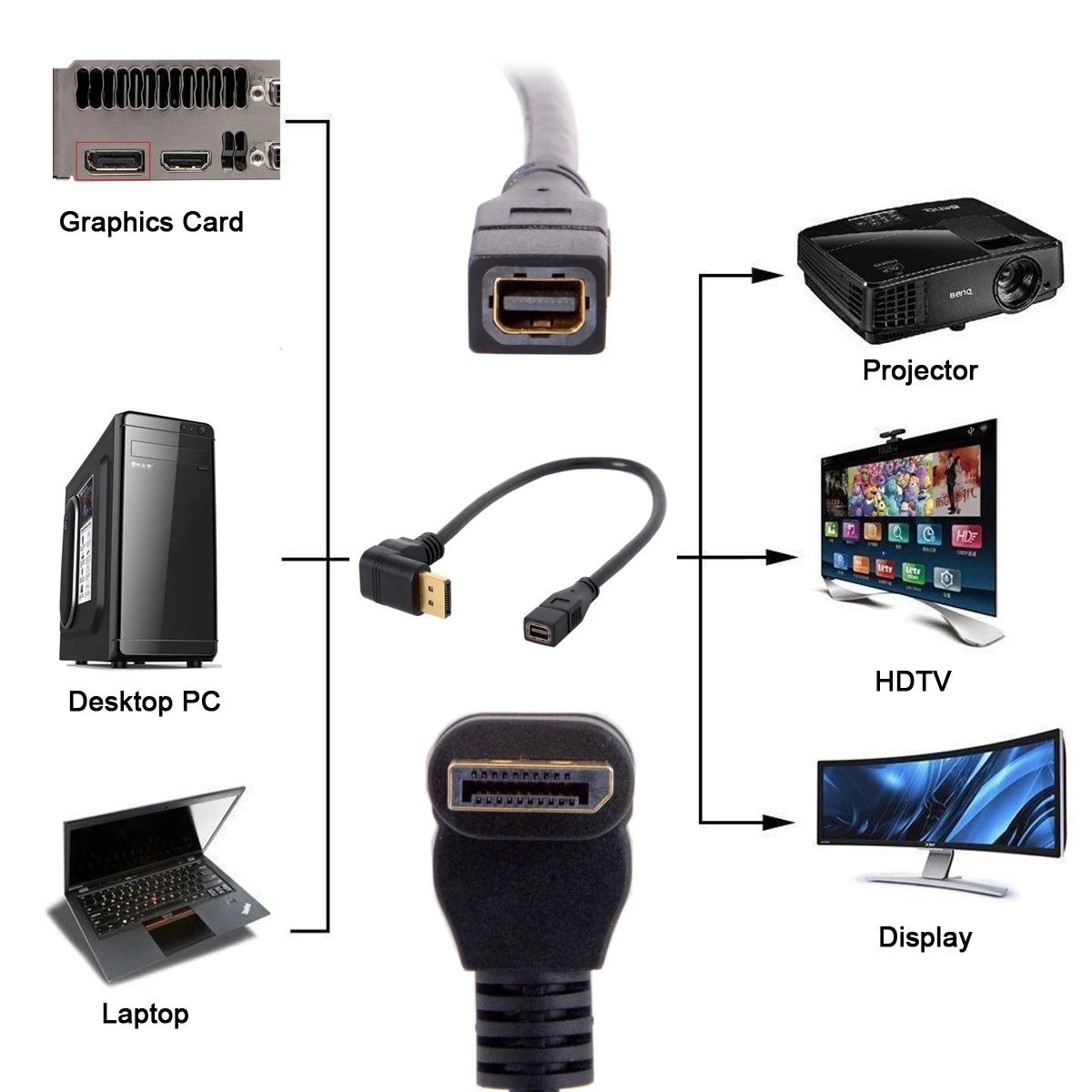 Comprar Cable corto DisplayPort DP macho de 25cm, ángulo recto de 90 grados a mini DP hembra para pantallas, ordenador, TV, monitor y proyector