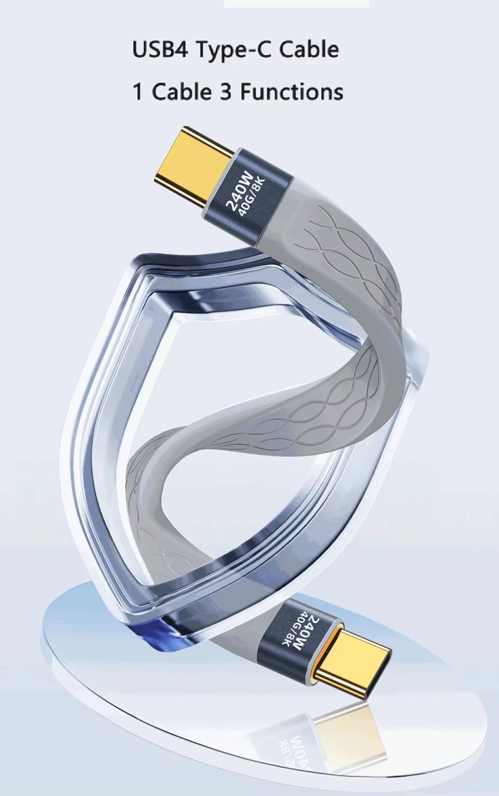 Cable corto USB C a USB C de 240W y 40GB, Cable de carga rápida tipo C, transferencia de datos de 40Gbps, Cable de extensión de carga de datos FPC plano y delgado de 8K