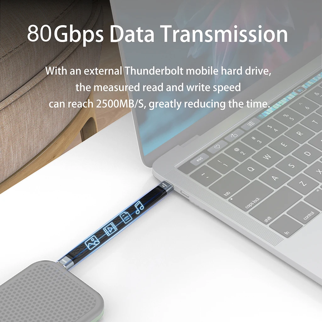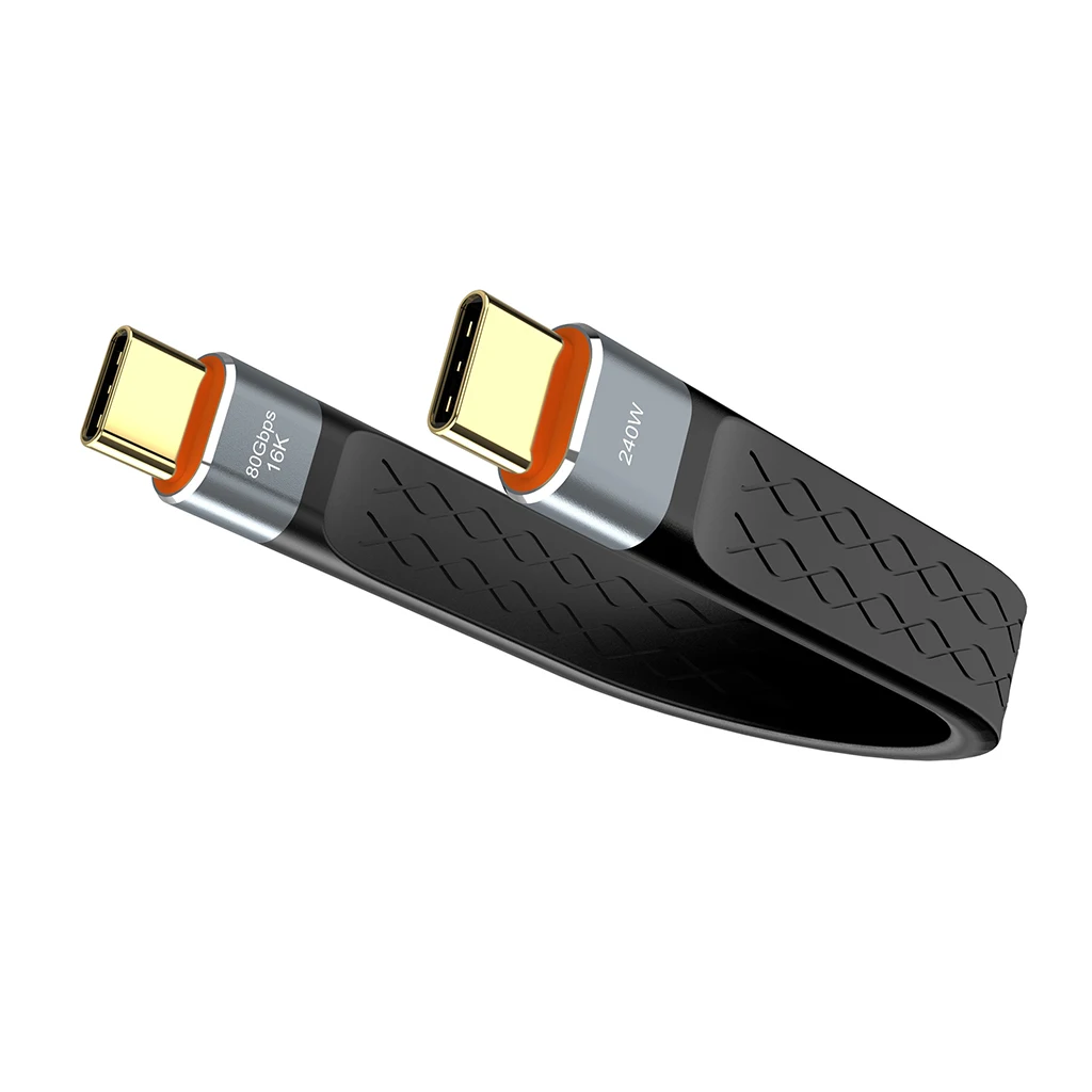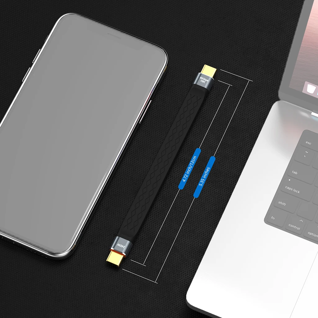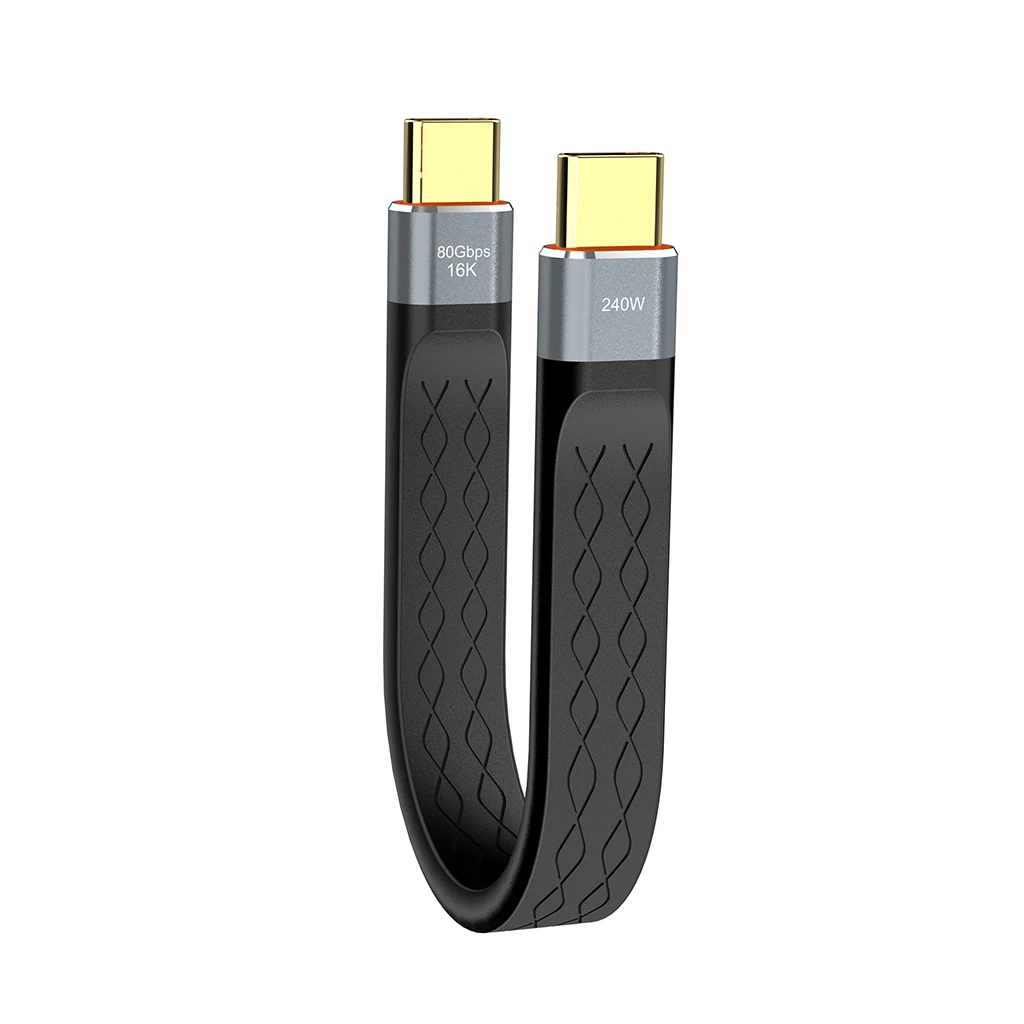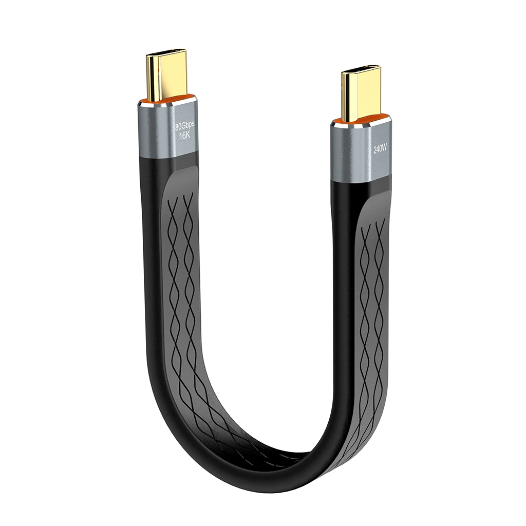 Cable corto de USB C a USB C de 240W y 40GB, Cable tipo C de carga rápida, transferencia de datos de 40Gbps, Cable de extensión de carga de datos plano de 16K