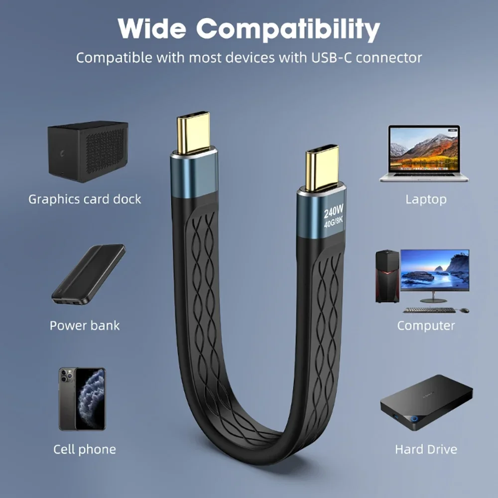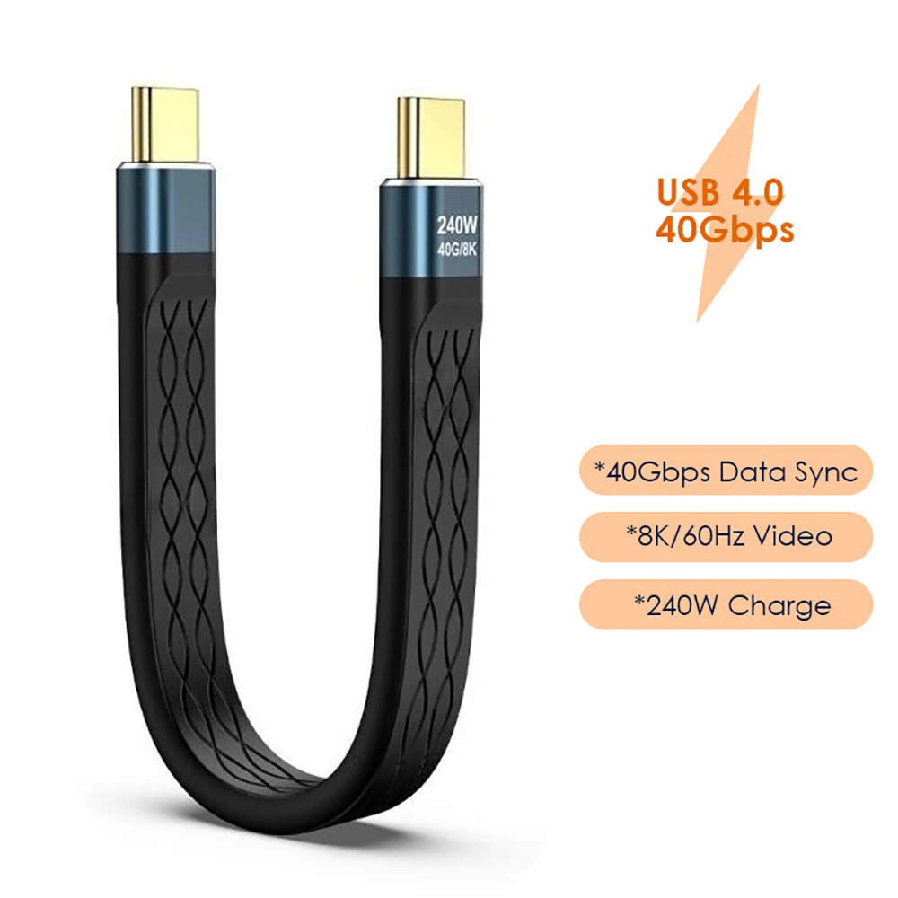 Cable corto USB C a USB C de 240 W y 40 GB PD3.1 Cable tipo C de carga rápida Transferencia de datos de 40 Gbps para MacBook iPad Pro Cable flexible plano