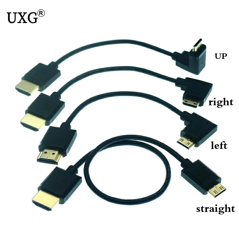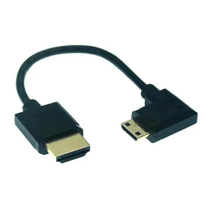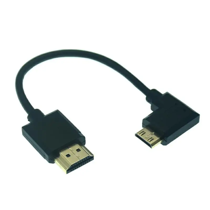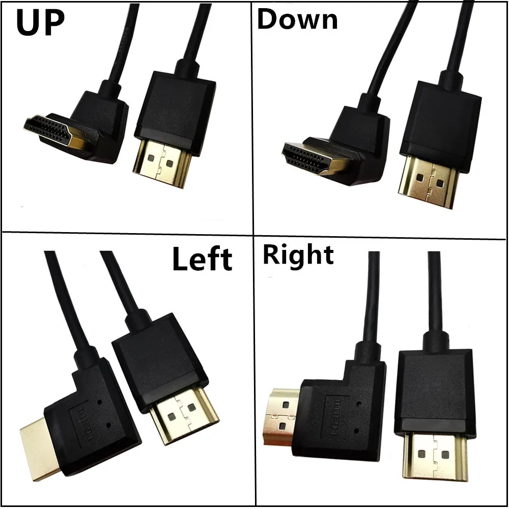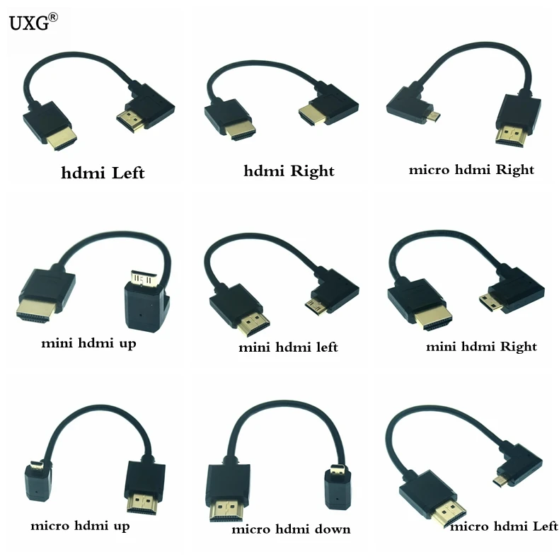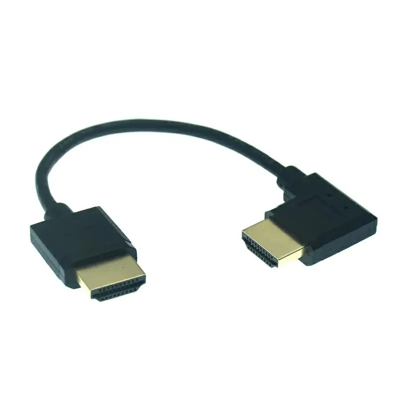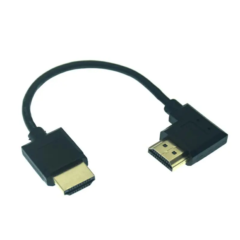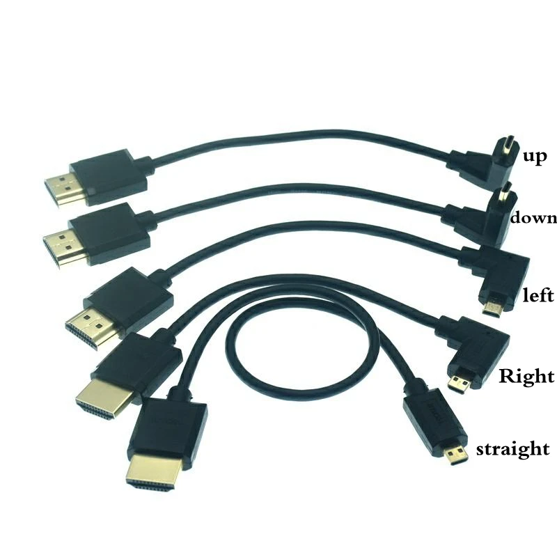 OD3.2mm Super Extreme Slim Cable compatible con HDMI de alta velocidad Mini Micro compatible con HDMI 2,0 Arriba Abajo Izquierda Derecha En ángulo 90 grados macho Cable corto Delgado 4K * 2K @ 60HZ 3840*2610, 4K, UltraHD, 3D, Ethernet y canal de Retorno de Audio 0,15 m