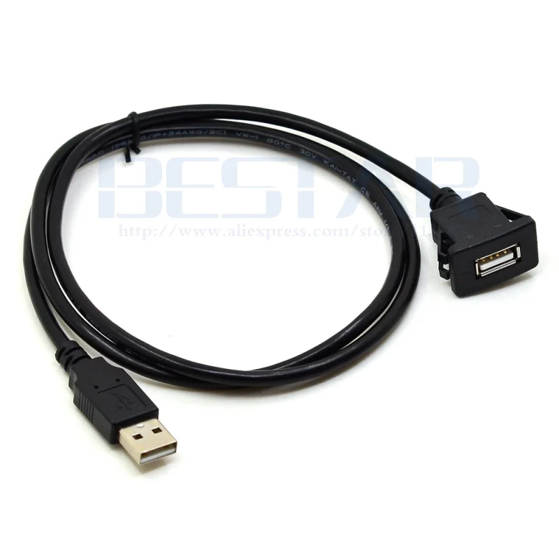 Comprar Cable cuadrado de un solo puerto USB 2,0, conector macho A hembra para montaje en Panel empotrado, para salpicadero de motocicleta y coche, 3 pies, 1M