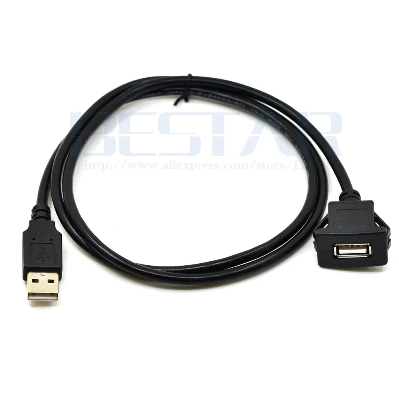 Comprar Cable cuadrado de un solo puerto USB 2,0, conector macho A hembra para montaje en Panel empotrado, para salpicadero de motocicleta y coche, 3 pies, 1M