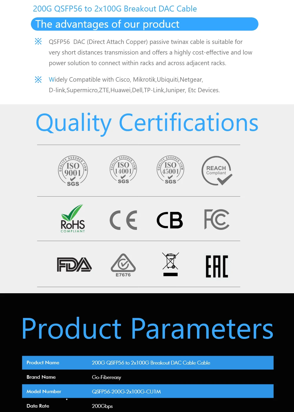 1. 200G QSFP56 a 2x100G QSFP56 Breakout