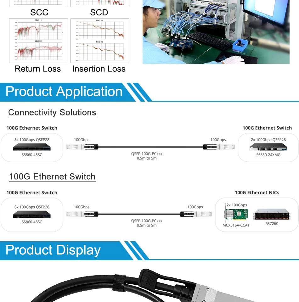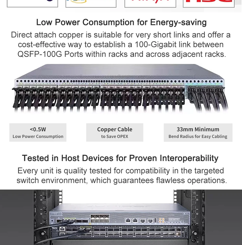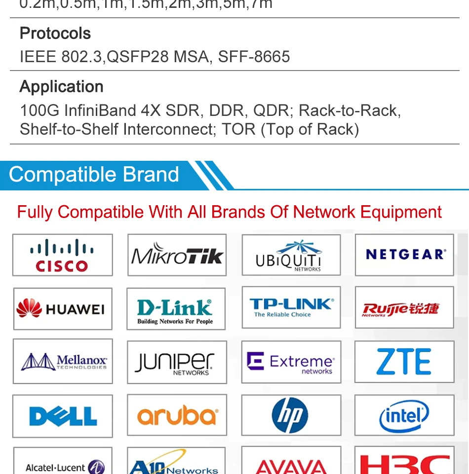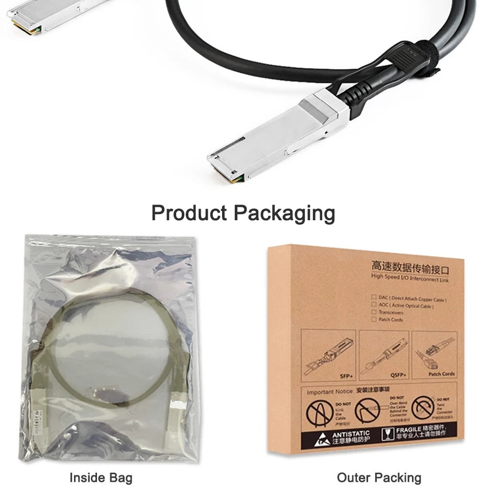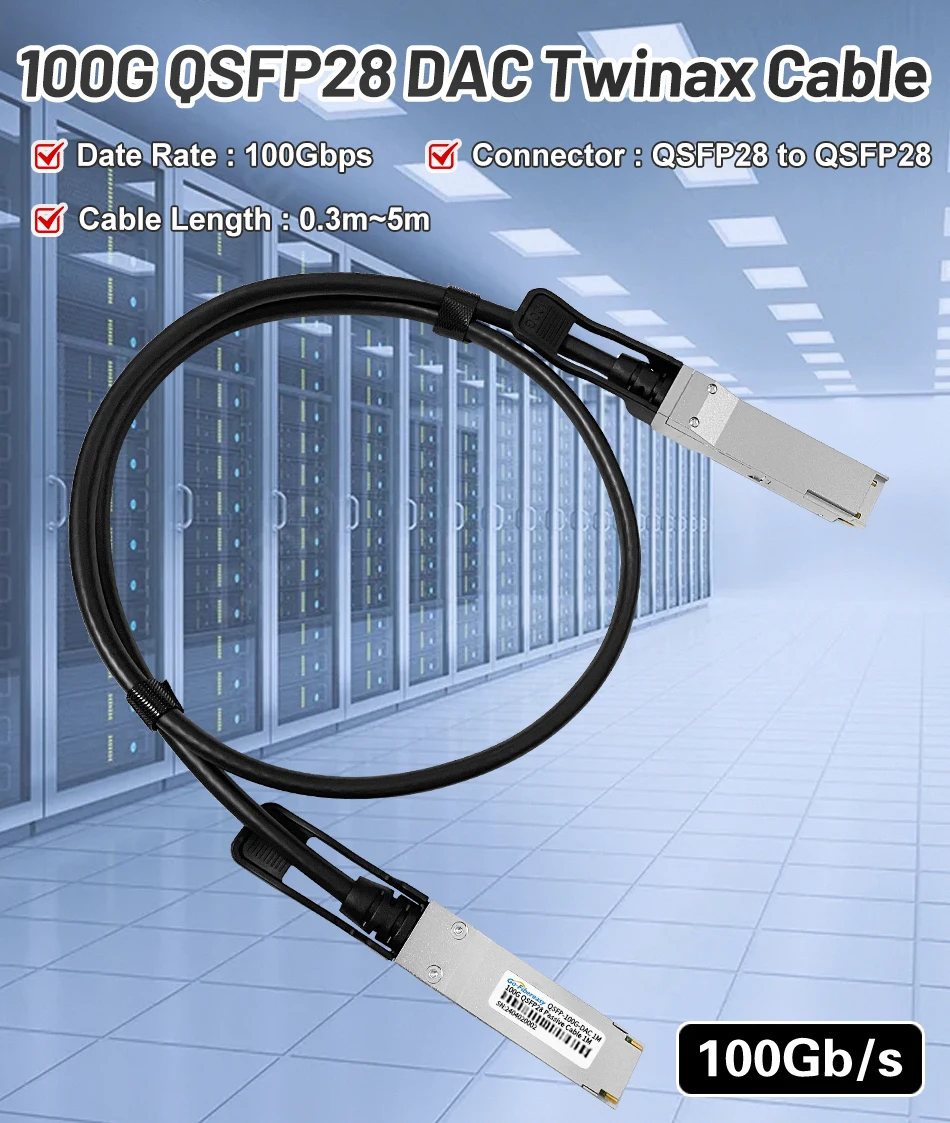 Cable 100Gb QSFP DAC0,3 m, 0,5 m,1M,2M,3M,5M 100G QSFP28 a QSFP28 Cobre de fijación pasivo Twinax