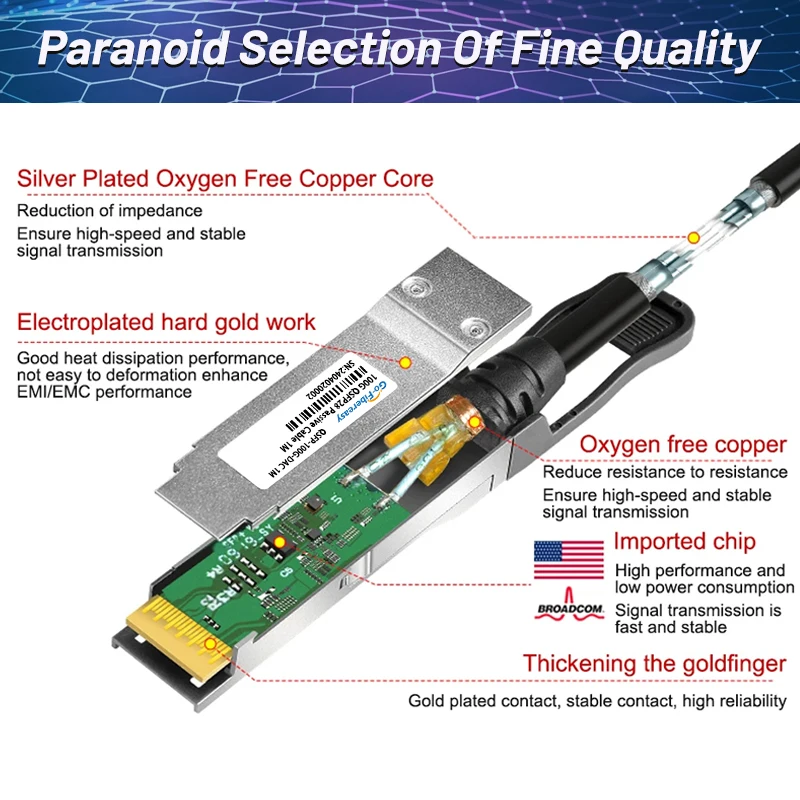 Comprar Cable DAC QSFP28 de 100G, Cables de cobre apilables compatibles con interruptor Ethernet Mikrotik,Huawei,Juniper, 0,5/1/2/3/5M, QSFP28 a QSFP28
