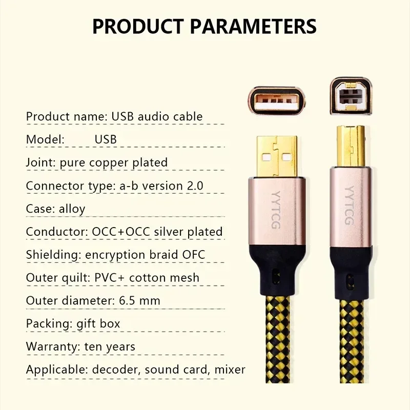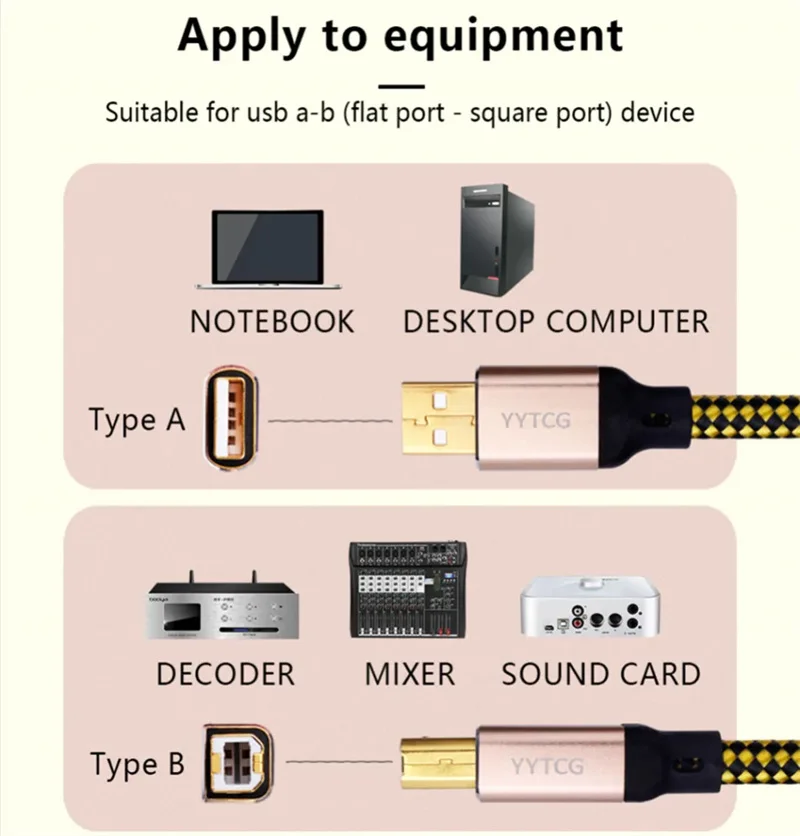 - Nombre del productoCable USB 2,0 de alta fidelidad, Cable DAC de datos, Cable de impresora USB, tipo A a tipo B, de gama alta, de tipo 1