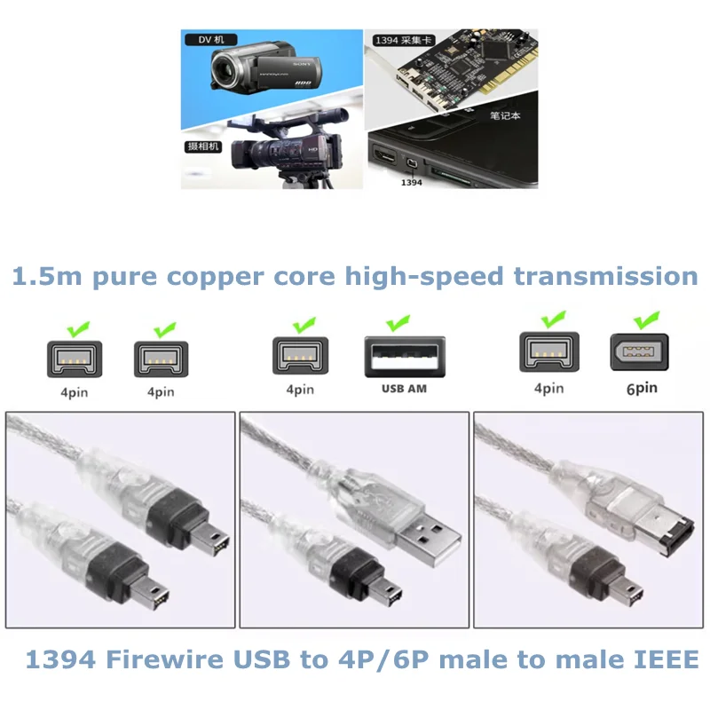Comprar Cable de datos 1,5 Firewire USB 1394 a 4 pines a 6 pines, 2,0 m, Cable de conexión IEEE 1394, tarjeta de adquisición DV para cámara