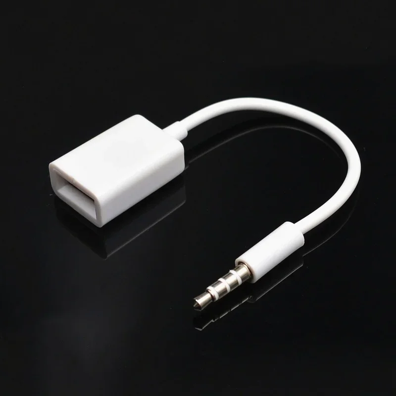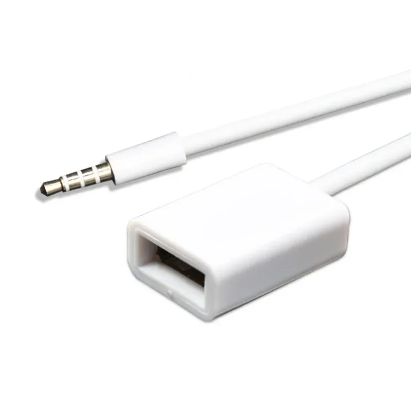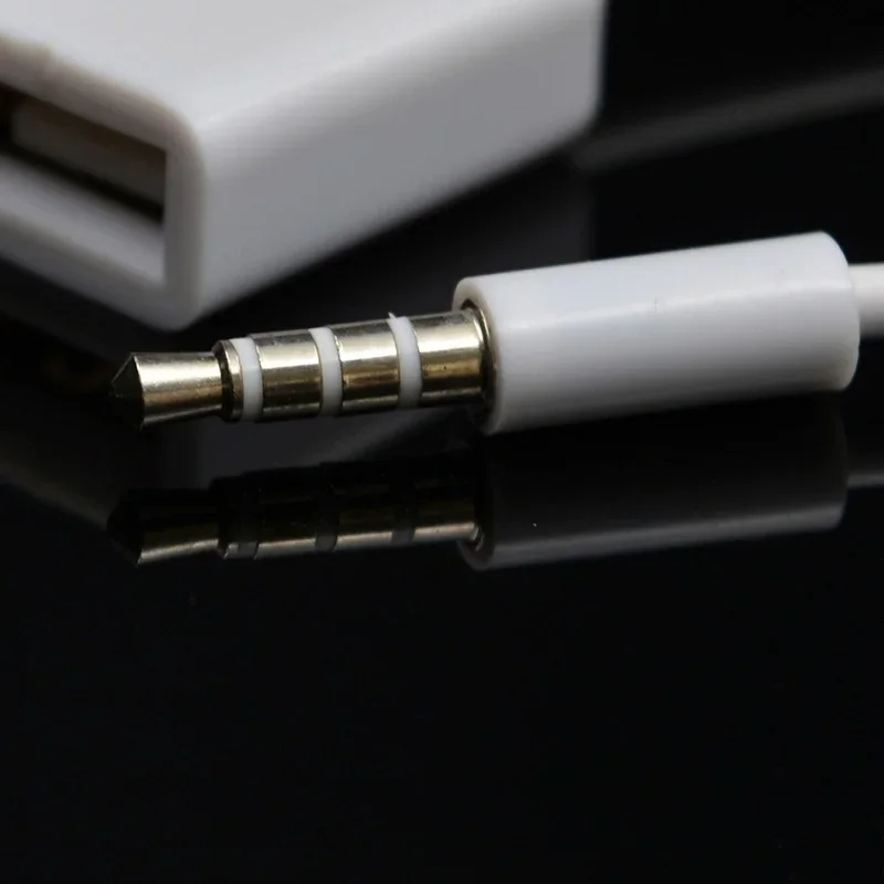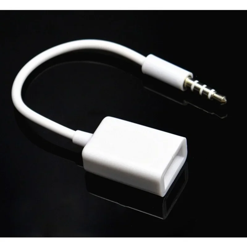 Comprar Cable de datos 3,5mm macho a USB hembra Cable de conversión AUX coche MP3 Cable adaptador de Audio U disco Clip línea 15mm longitud blanco