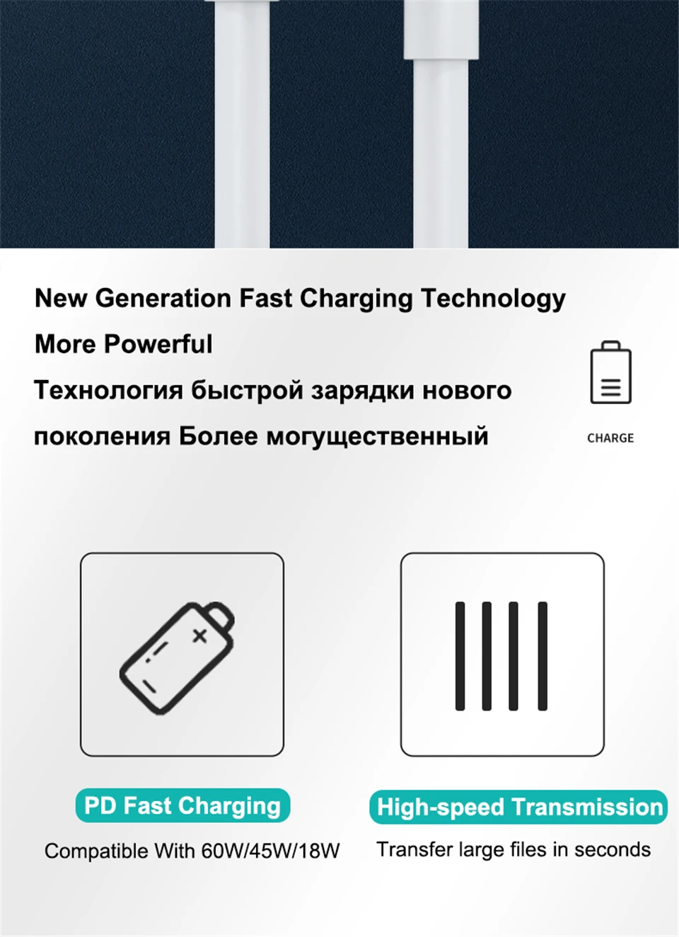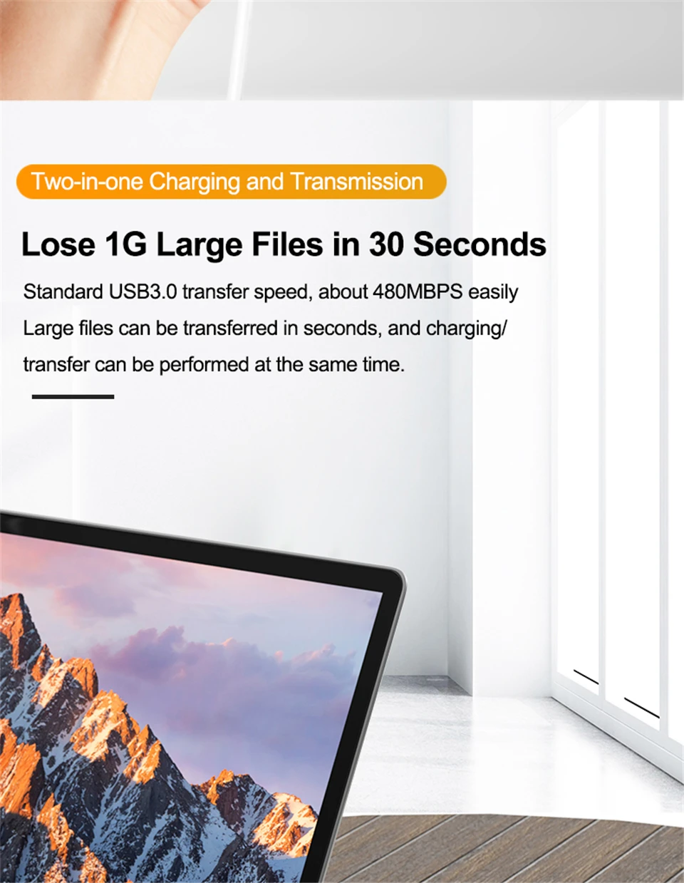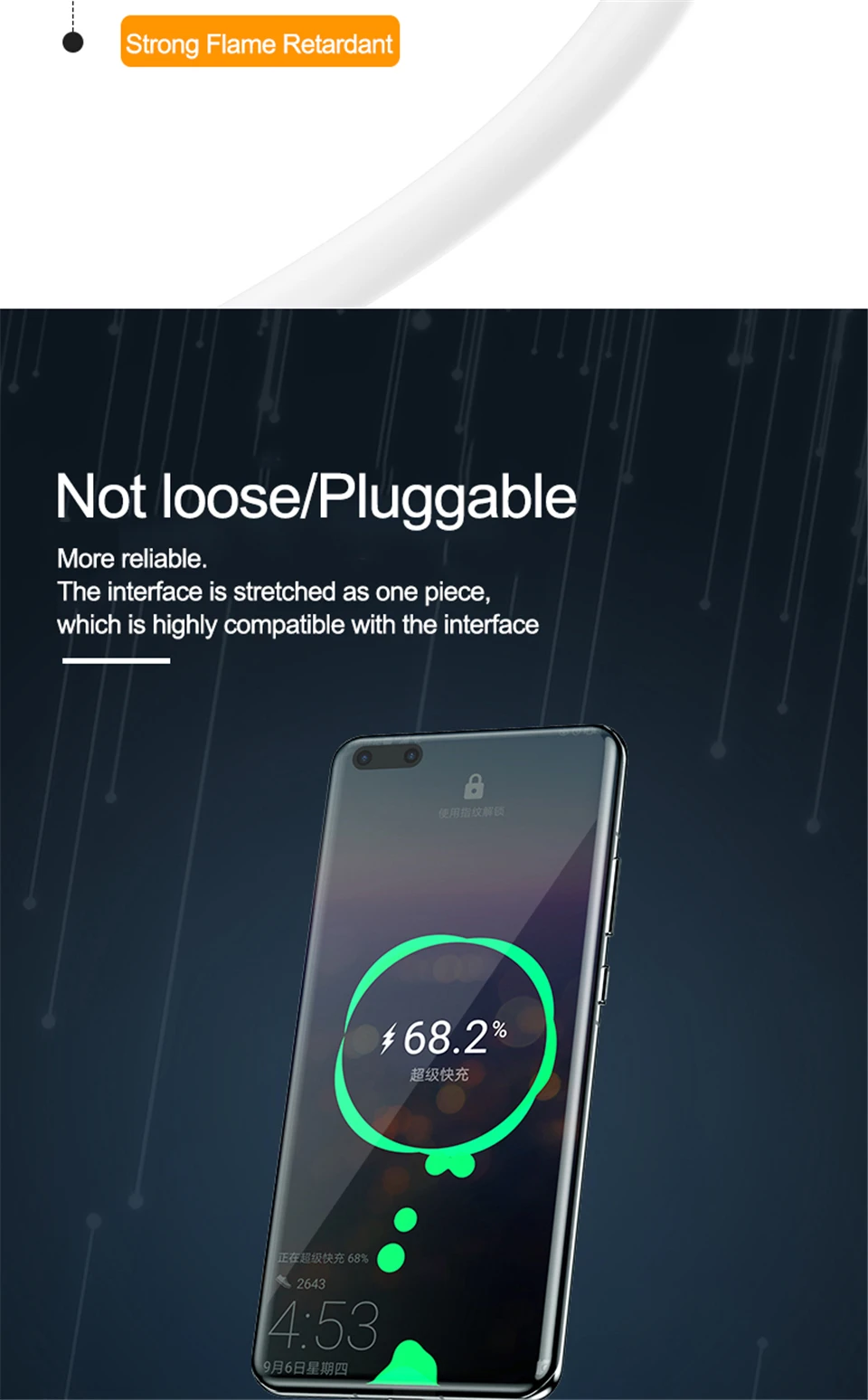 Tiene un diseño dos en uno, compatible con la carga y la transmisión de datos. Tiene una corriente alta de 5A, lo que le permite soportar una carga rápida.