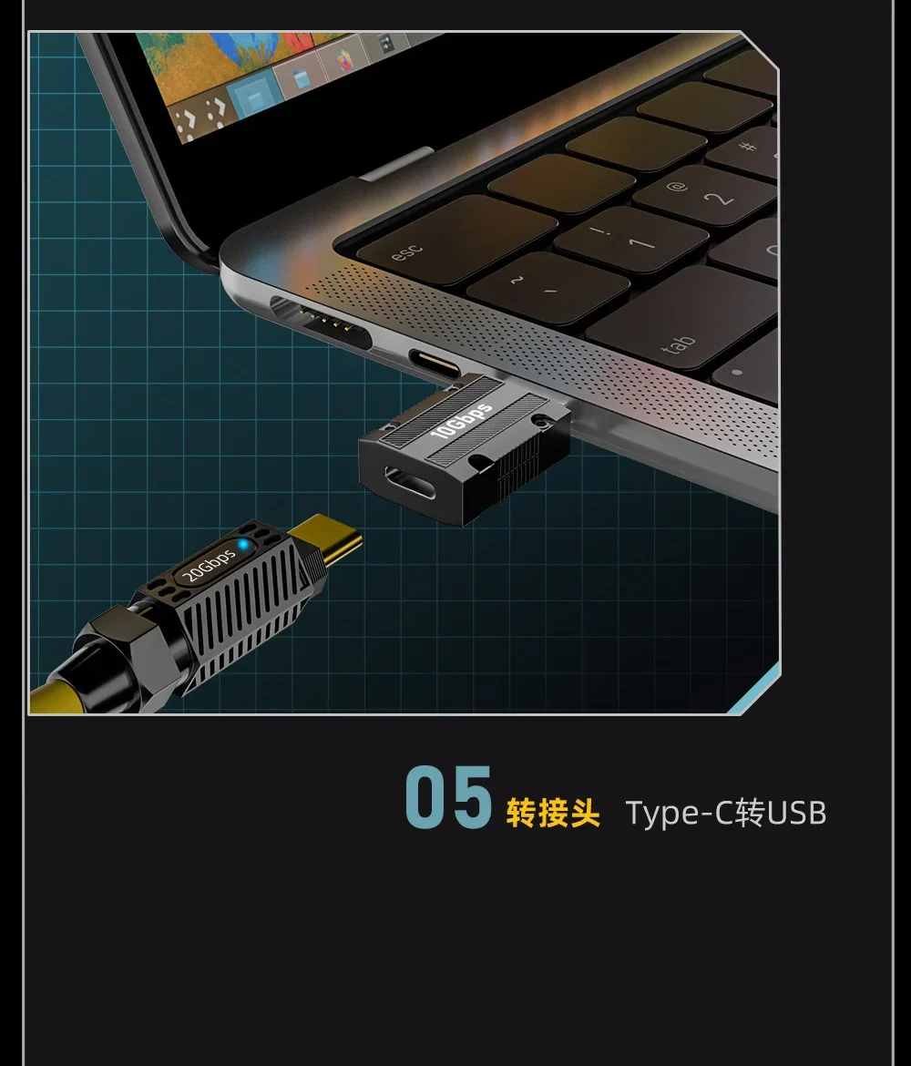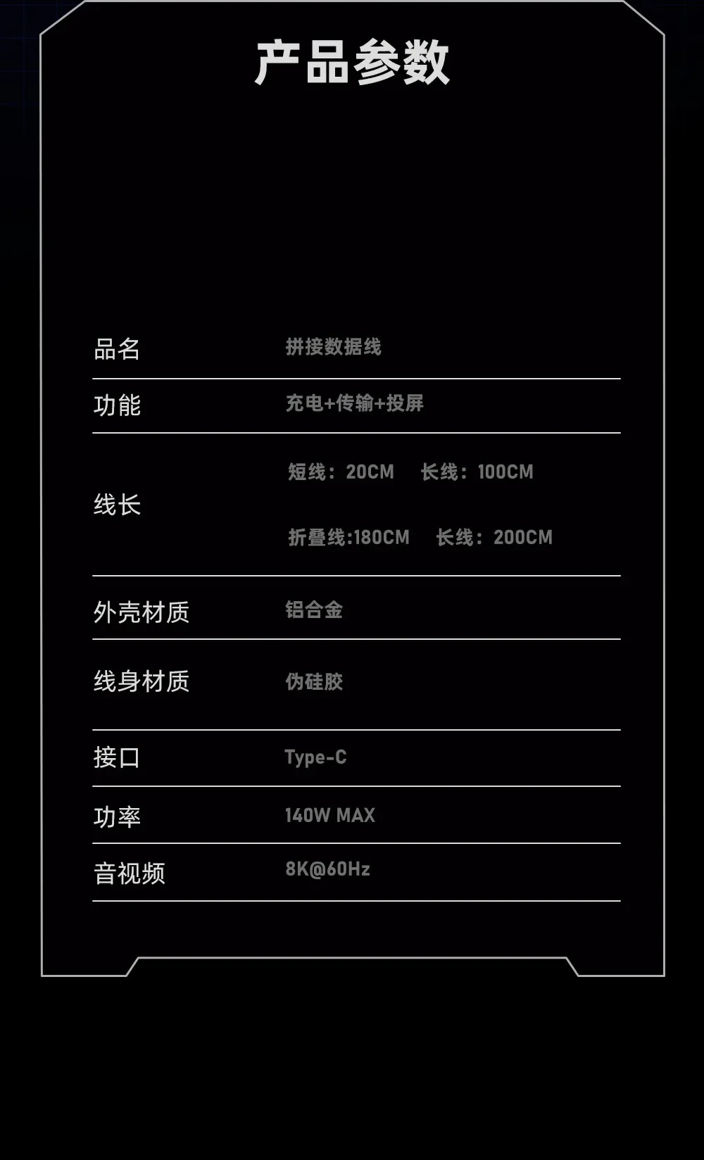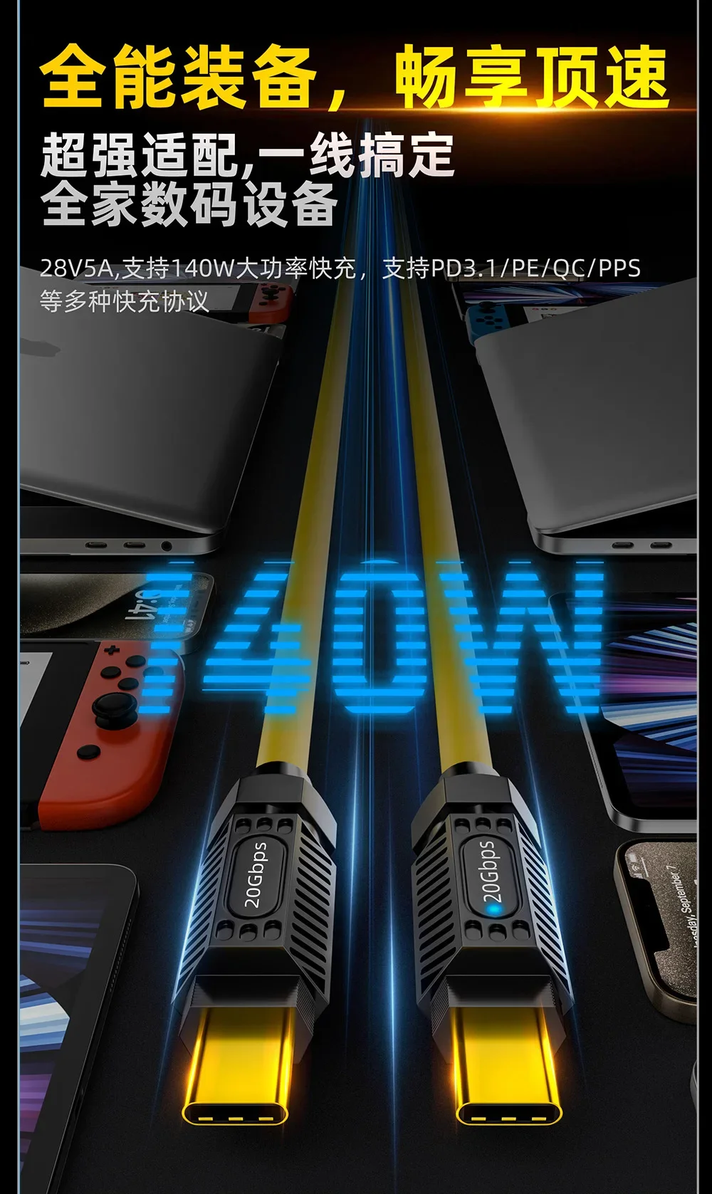 Función: carga de 140 W + transmisión de datos de 20 Gbps + proyección de pantalla de 8 K a 60 Hz