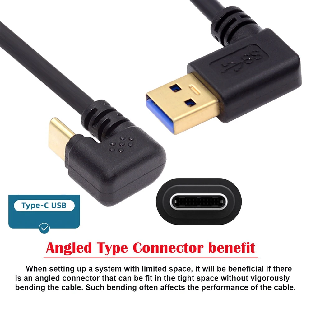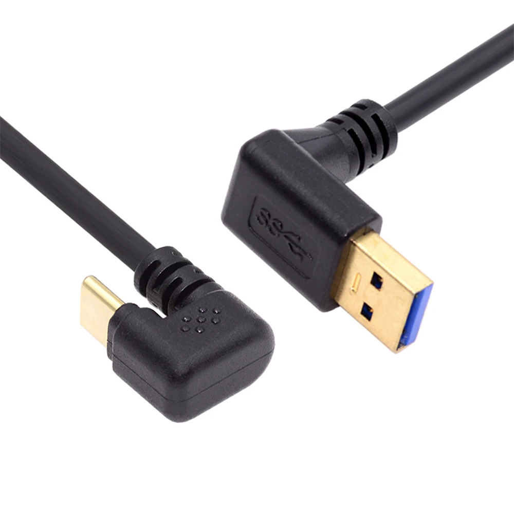 Cable de datos de alimentación USB3.0 tipo A a tipo C en ángulo, macho a macho, 5Gbps, en forma de U opuesta, en ángulo trasero