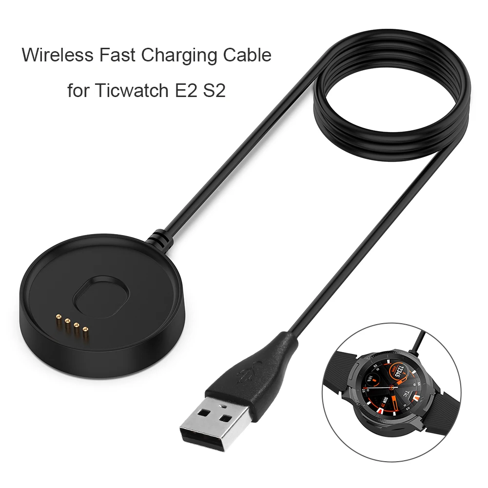 Base de carga rápida para reloj inteligente USB de 100cm para Ticwatch E2/S2 Cable de base de carga portátil