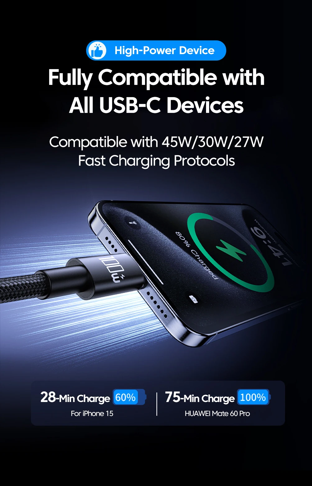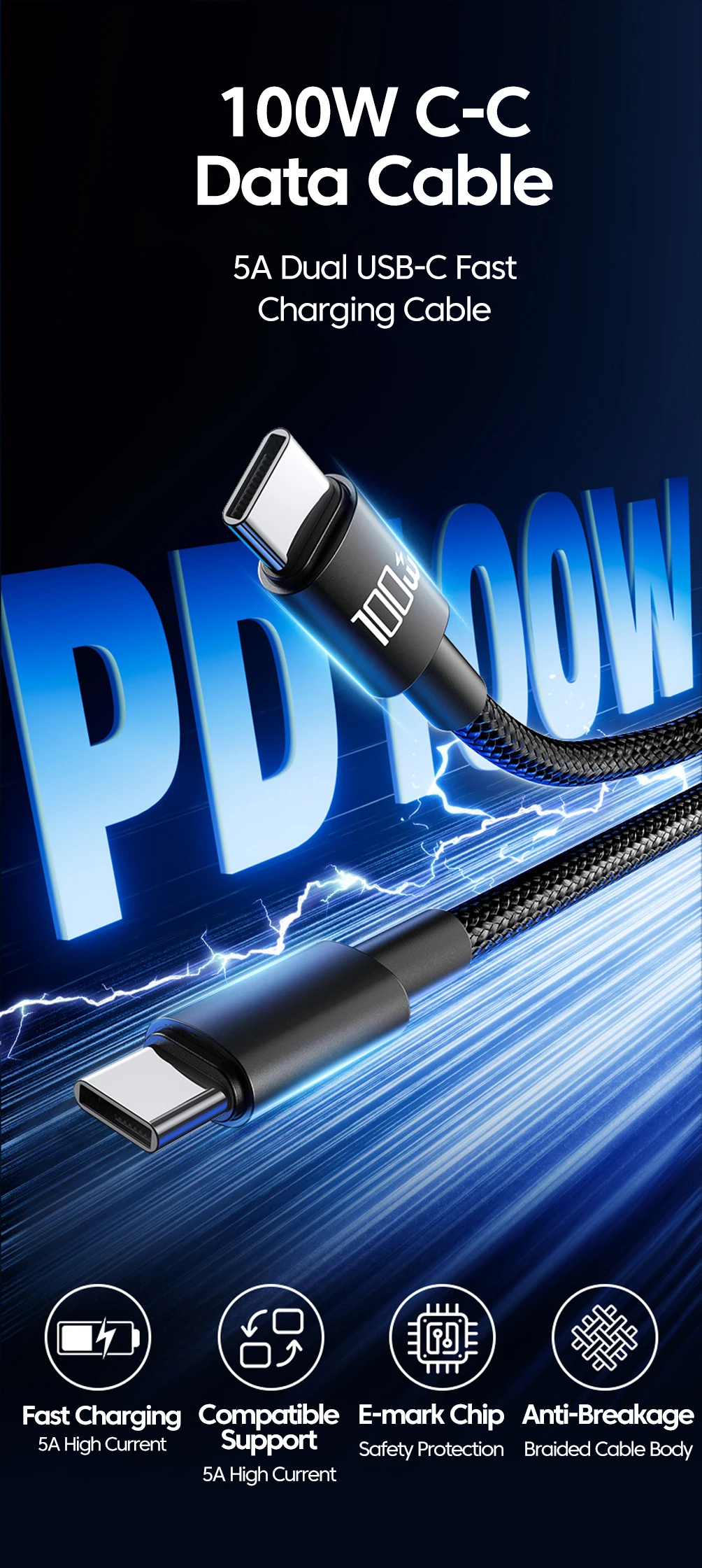 Cable de datos de C-C de 100W 5A Cable de carga rápida Dual tipo C Cable tipo C a tipo C para iphone 15 16 Samsung Huawei Xiaomi Cable USB C