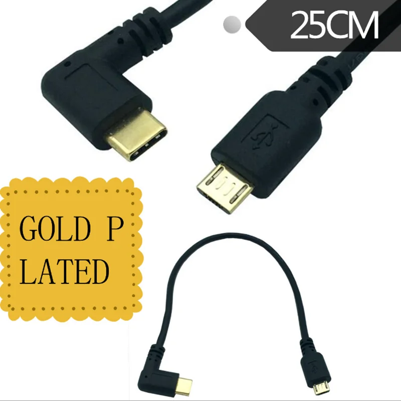 Teléfono móvil LeTV chapado en oro USB 3,1 cable de datos tipo C a micro 5P macho 0,25 M