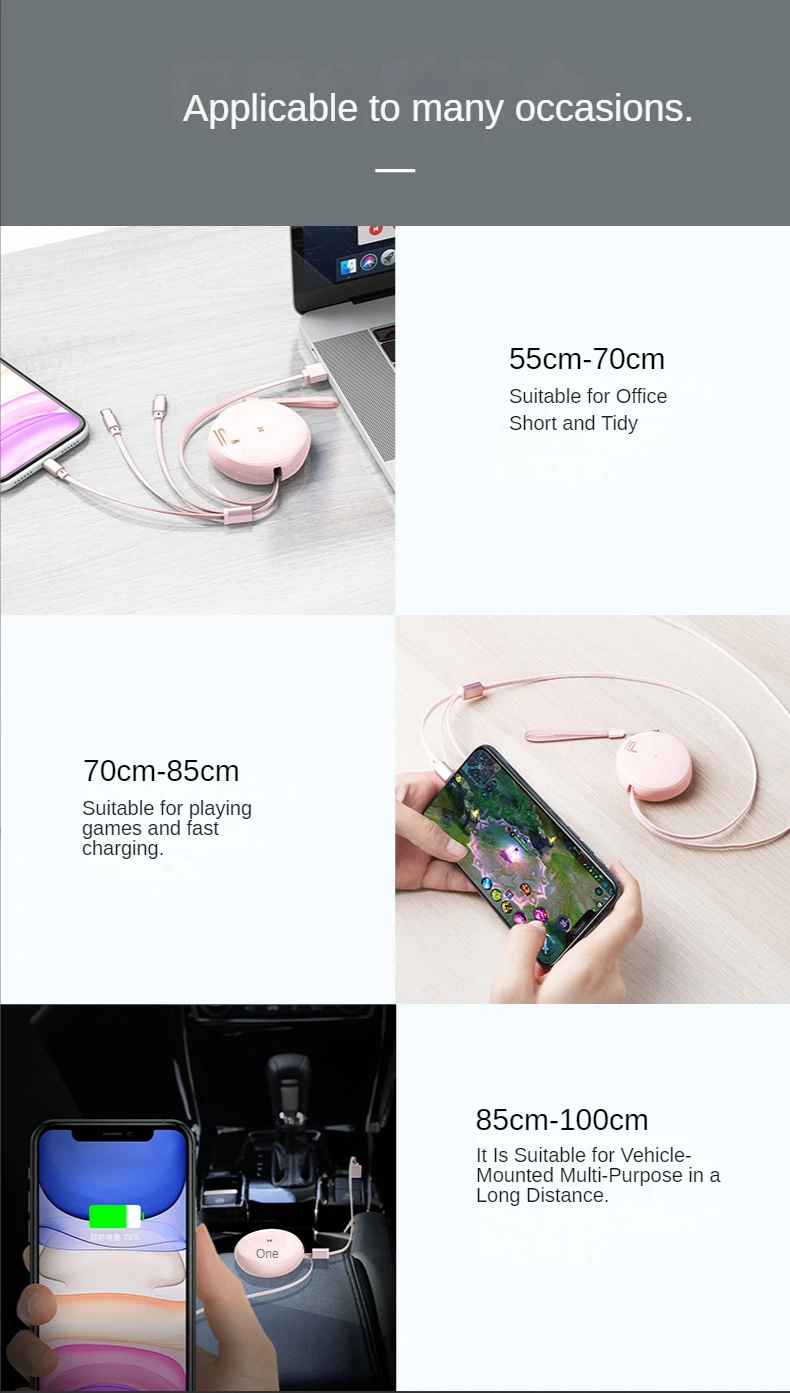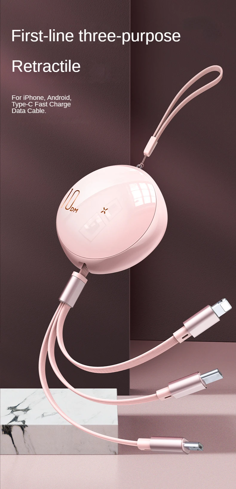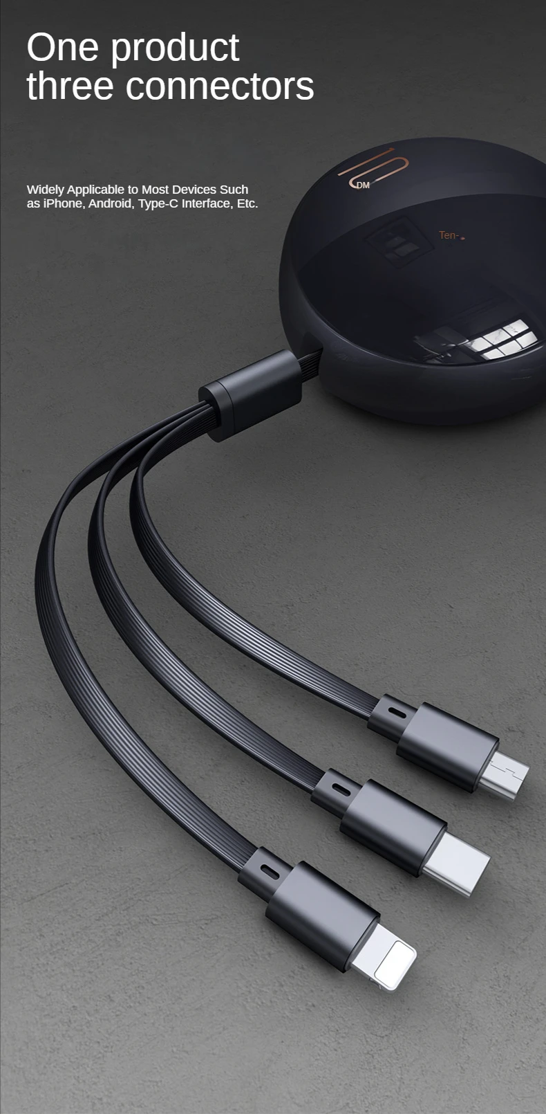 Comprar Cable de datos de carga rápida 3 en 1 para iPhone 11, 12 pro, carga para Android, USB tipo C, Cable retráctil para teléfono móvil