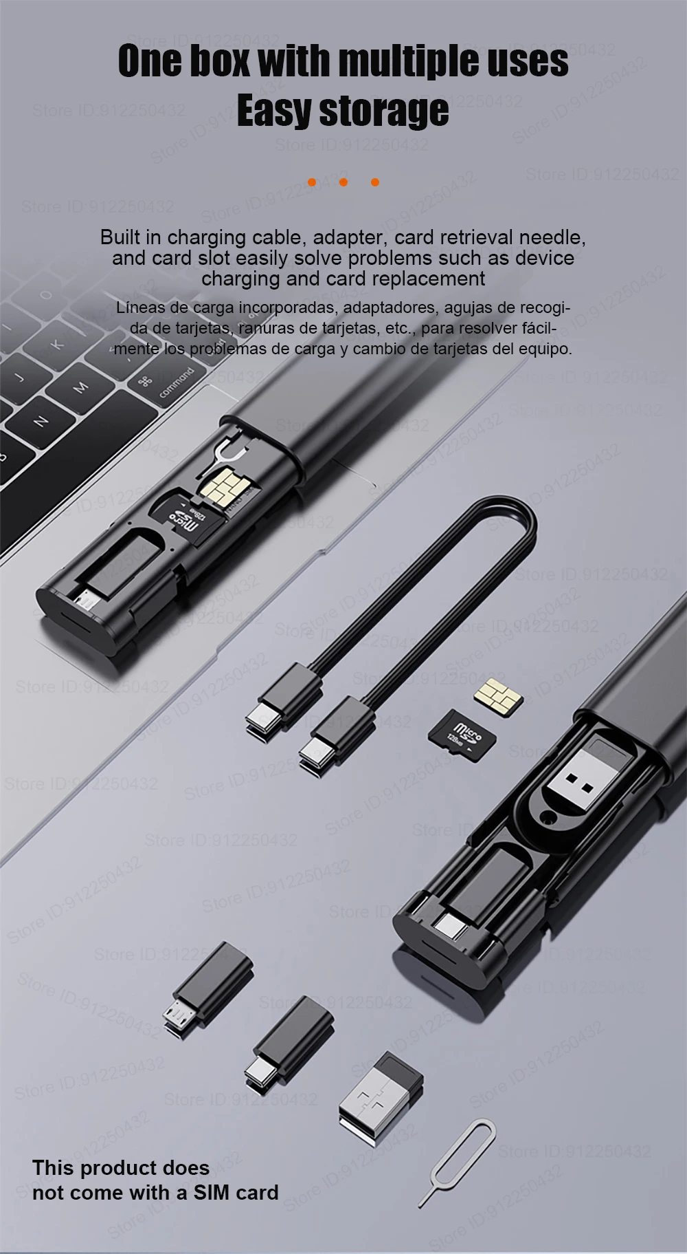 Cable de datos de carga rápida 5 en 1, estuche de carga USB Micro para adaptador de conversión de For iPhone, USB C a tipo C, caja de almacenamiento de tarjeta de Cable PD60W