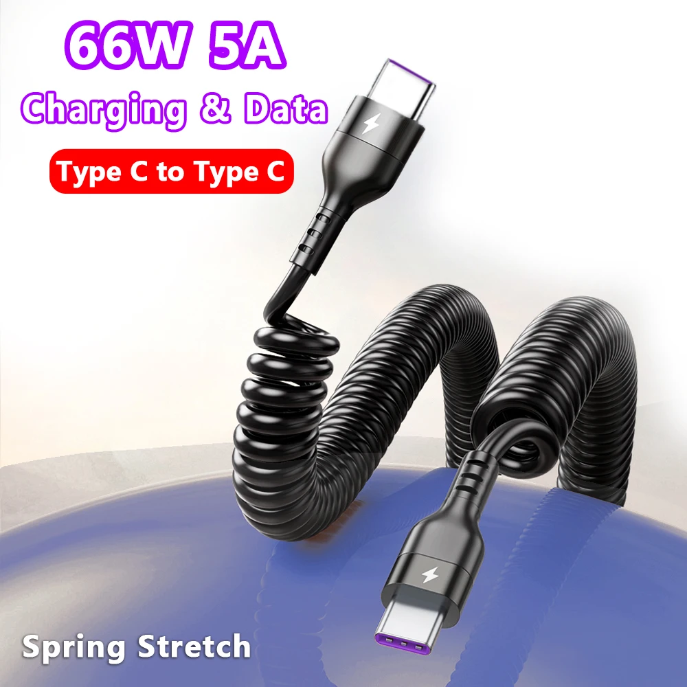 Comprar Cable de datos de carga rápida, Cable telescópico de tracción de resorte para Samsung S24, Xiaomi K60, teléfono Android, línea USB C, 66W, 5A tipo C a tipo C