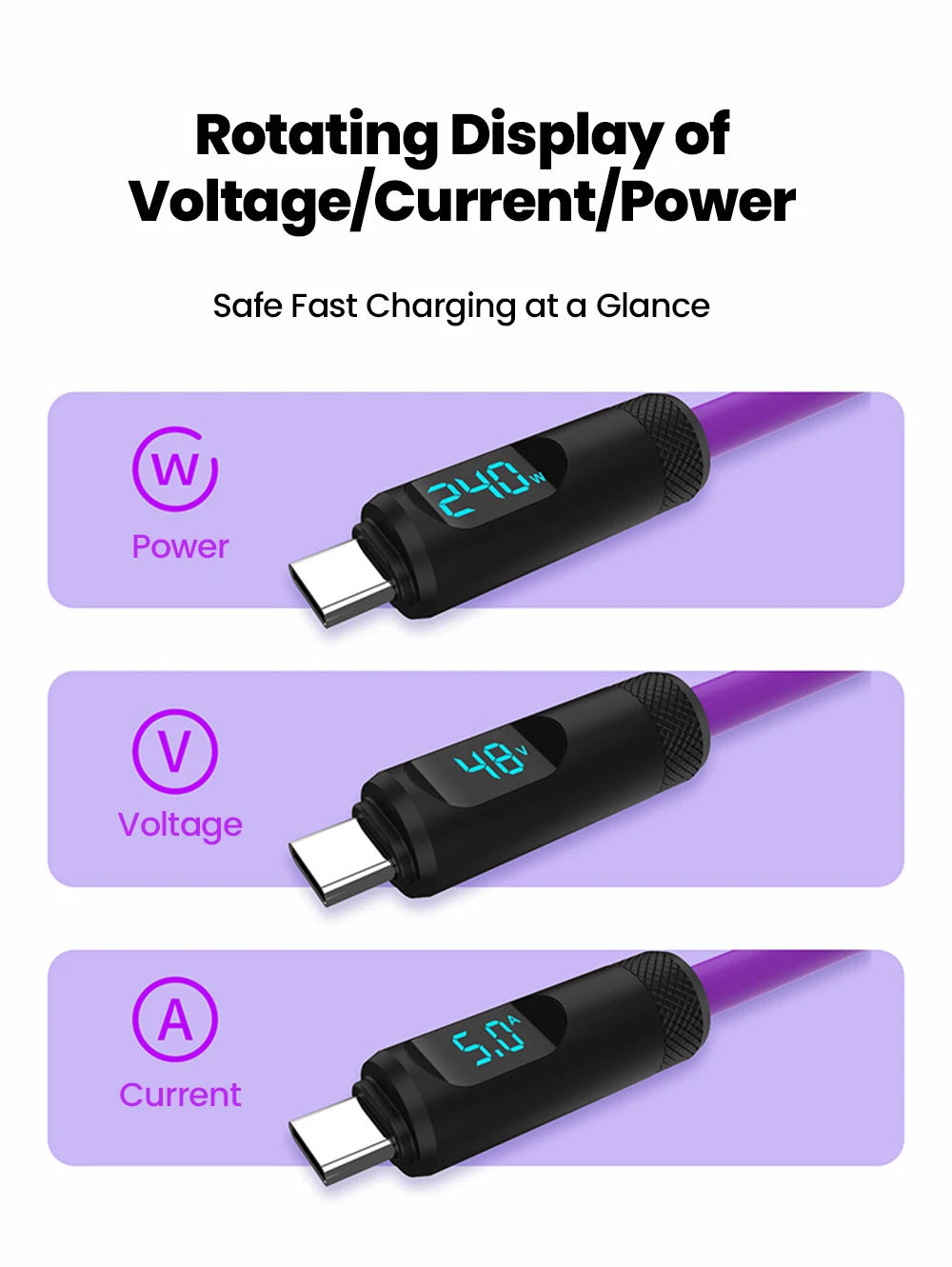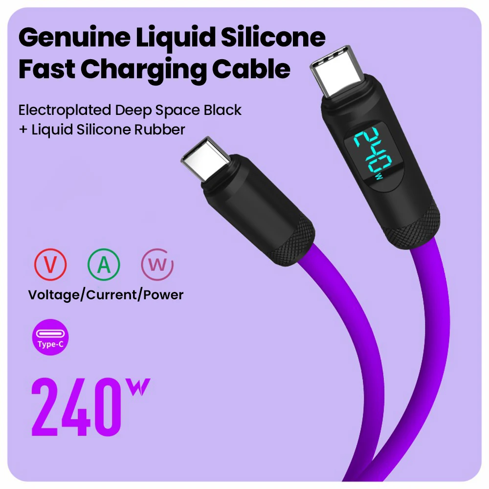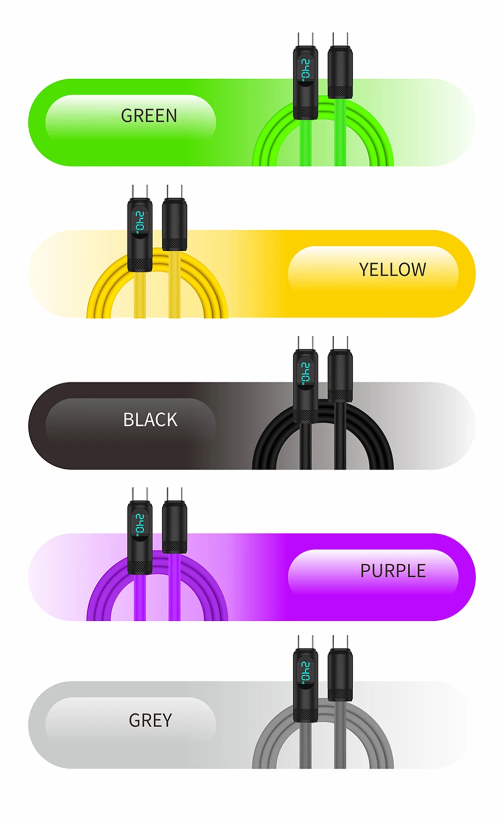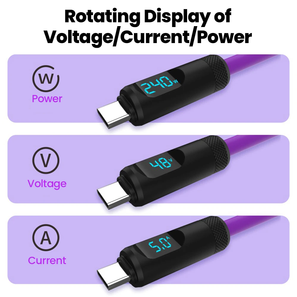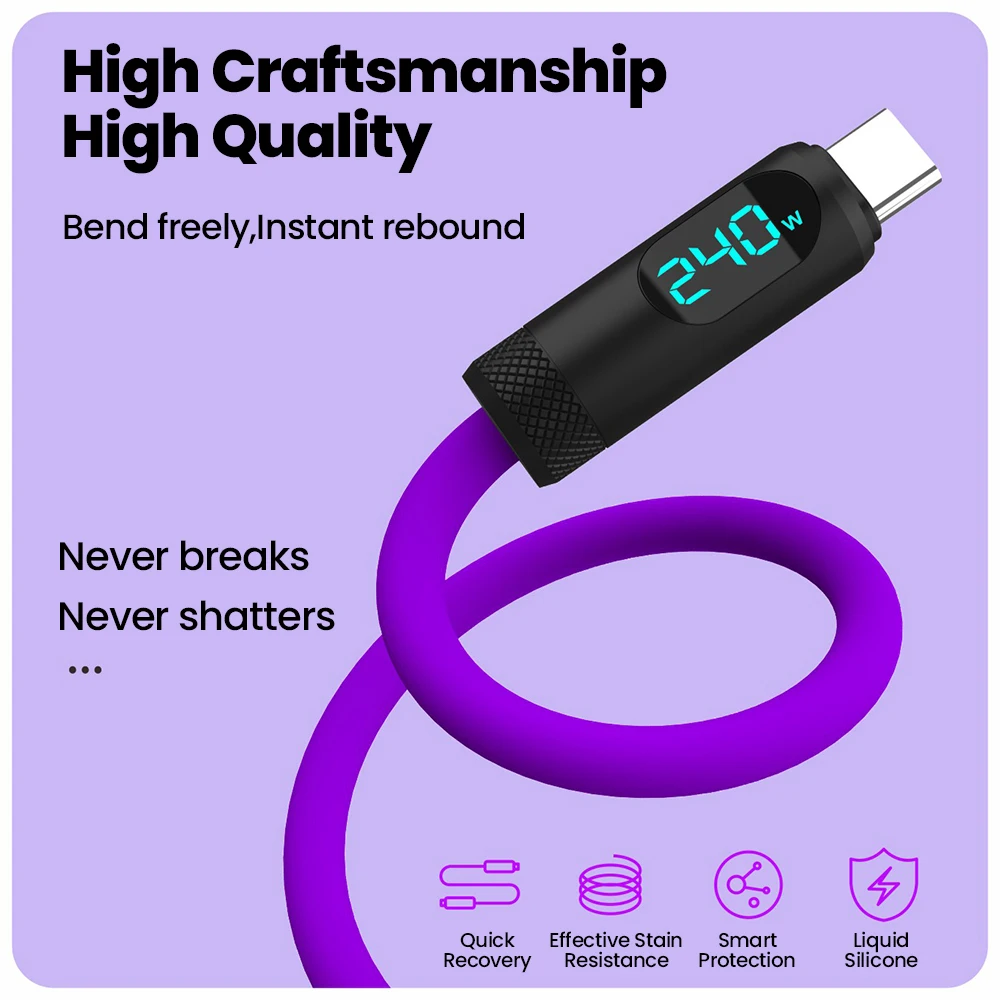 Comprar Cable de datos de carga rápida PD 240W tipo c a tipo c con pantalla Digital para iPhone15/16/17 Samsung Notebook PD Cable de carga rápida