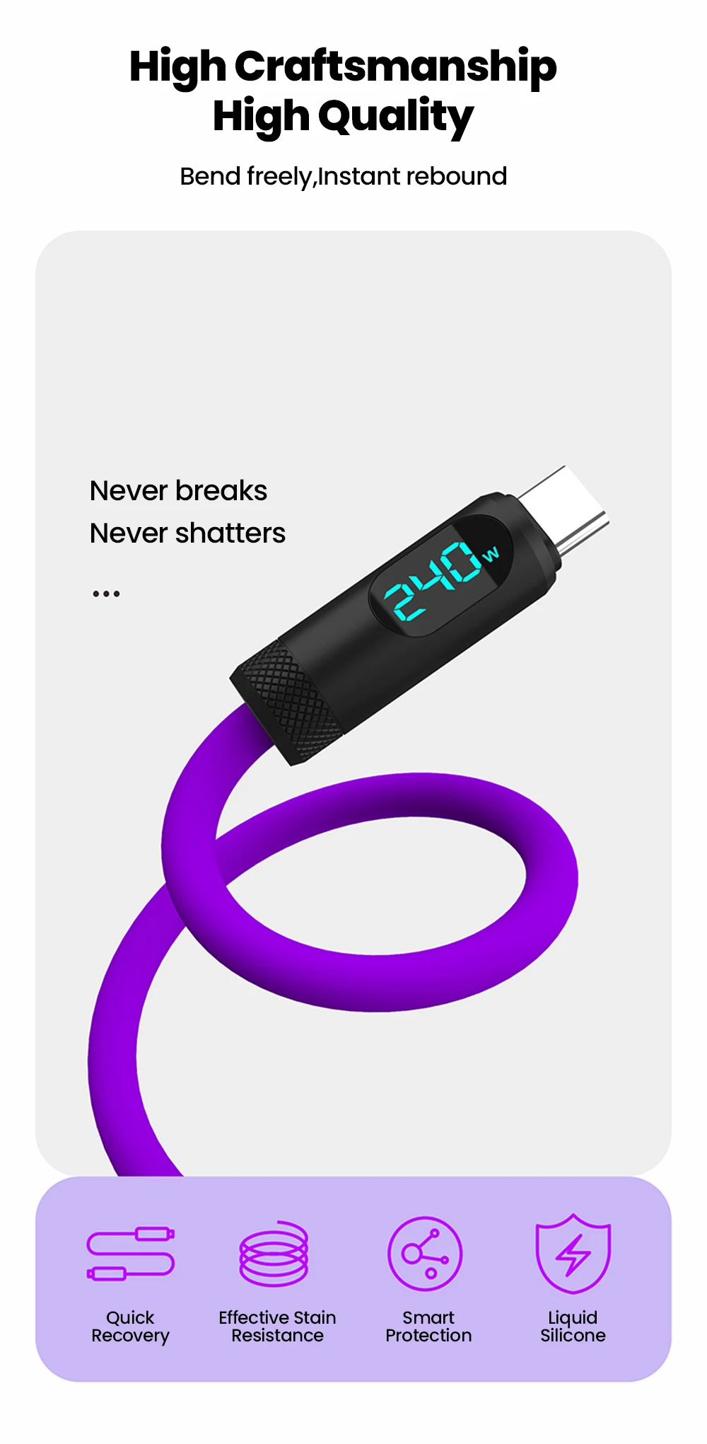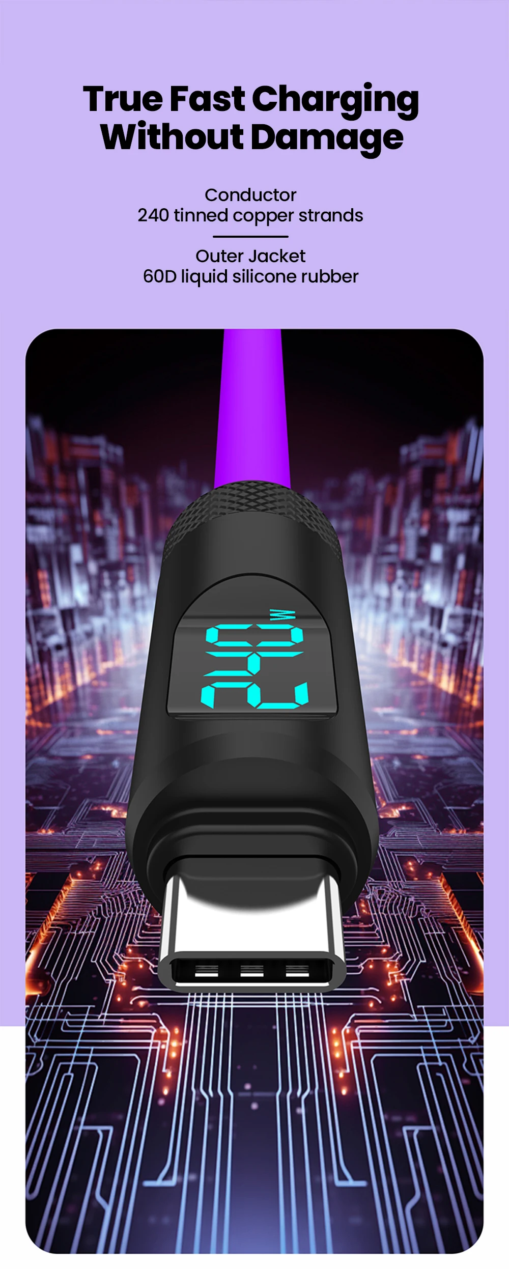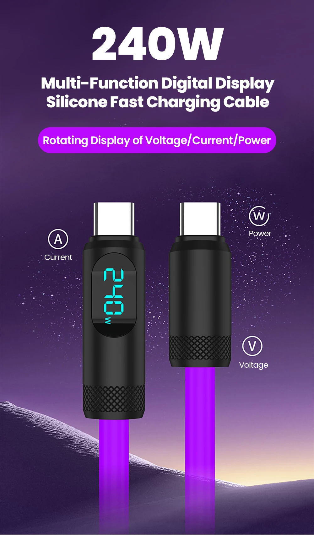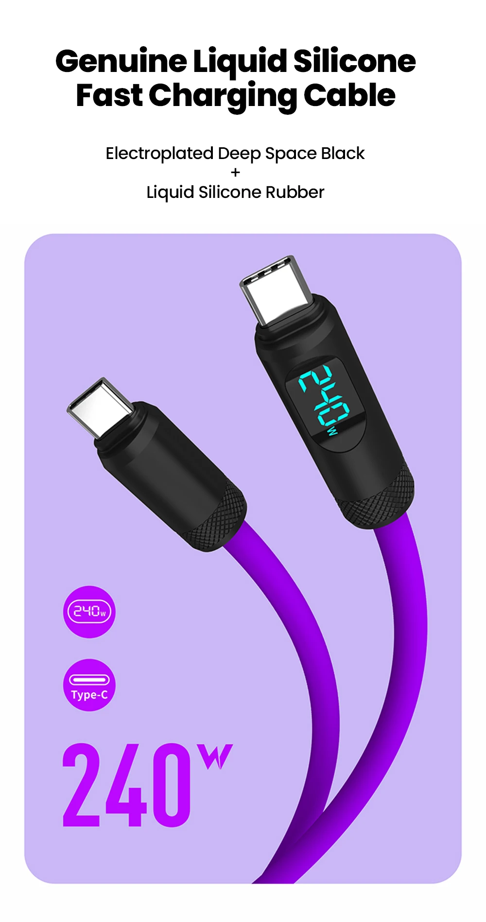 Comprar Cable de datos de carga rápida PD 240W tipo c a tipo c con pantalla Digital para iPhone15/16/17 Samsung Notebook PD Cable de carga rápida