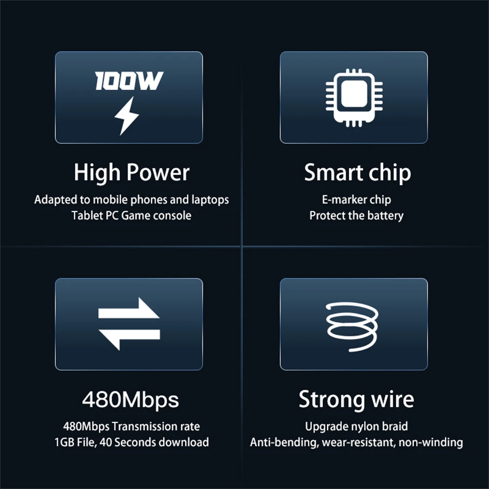 Comprar Cable de datos de carga rápida PD tipo C a tipo C, 100W, para Samsung, Xiaomi, POCO, Huawei, OnePlus, MacBook Pro, IPad Pro