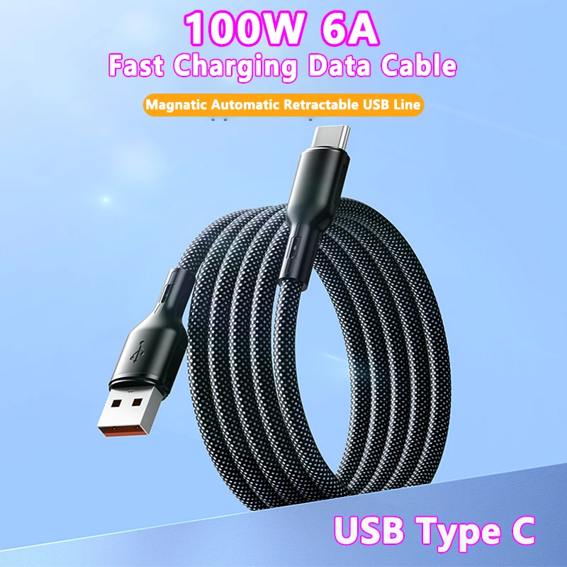 Comprar Cable de datos de carga rápida retráctil magnético, succión tipo C, 100W, 6A, fácil almacenamiento para Samsung S22, Xiaomi, Huawei