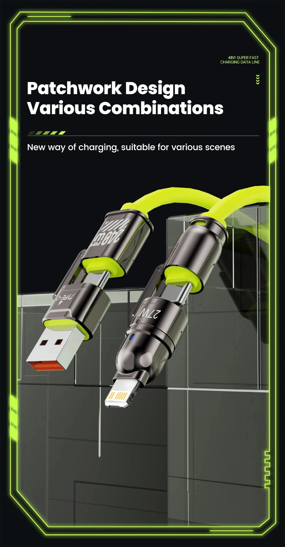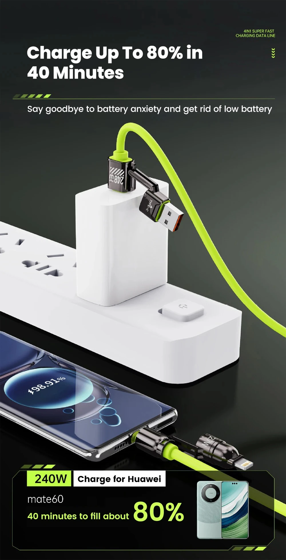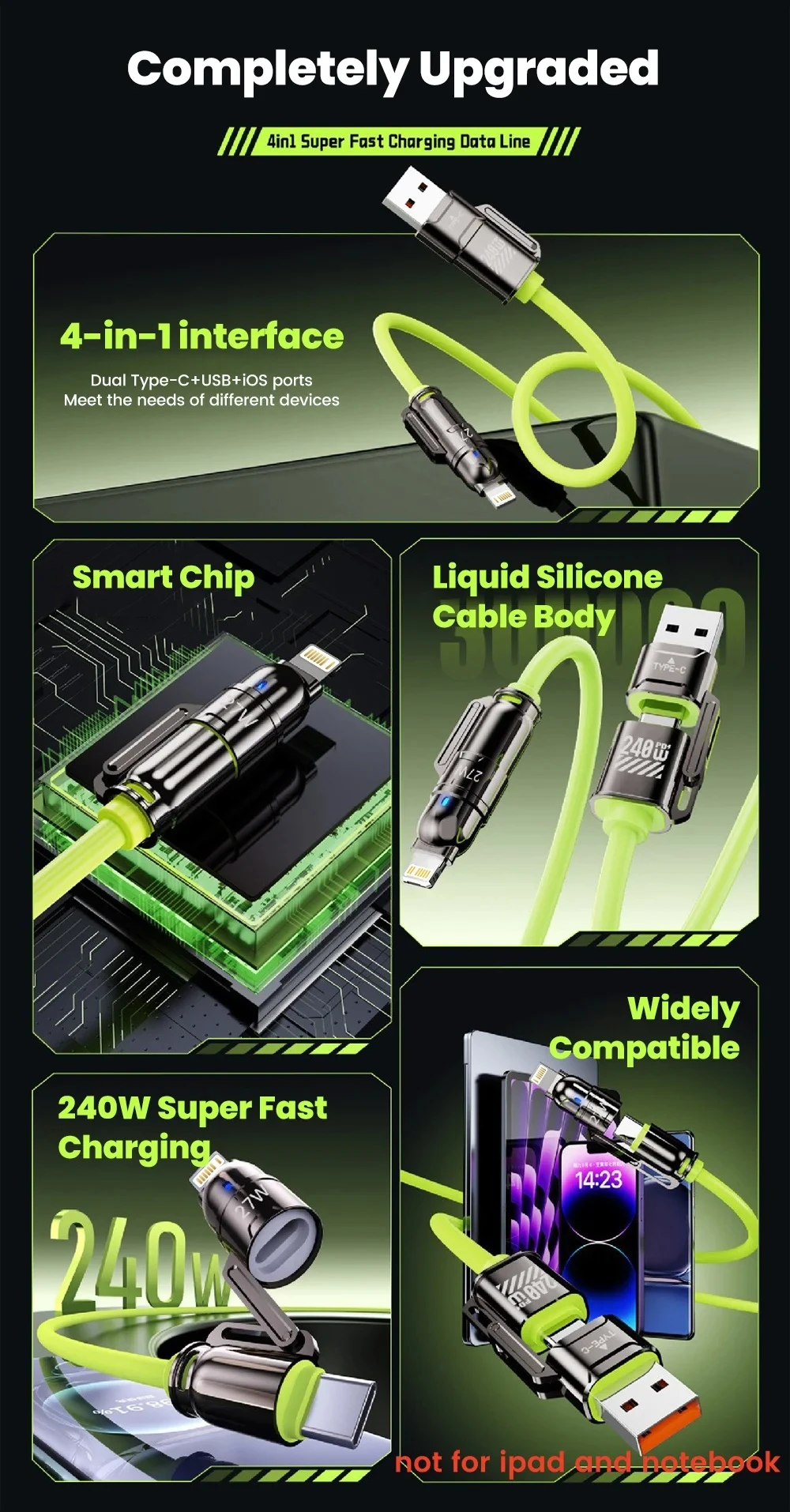 Comprar Cable de datos de carga rápida USB 4 en 1 de 240W, Cable de aleación de Zinc USB C a tipo C para teléfono móvil iPhone 15 16 Samsung Huawei Xiaomi 15