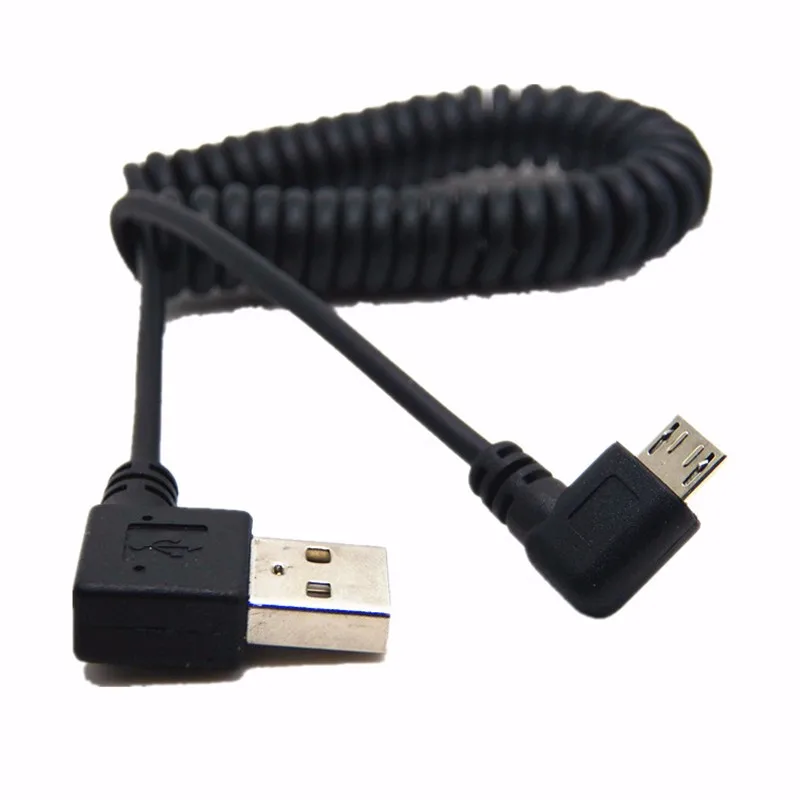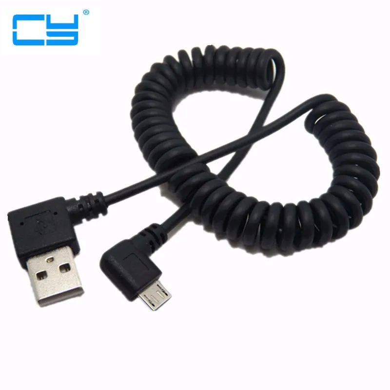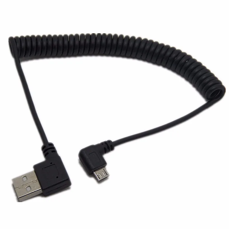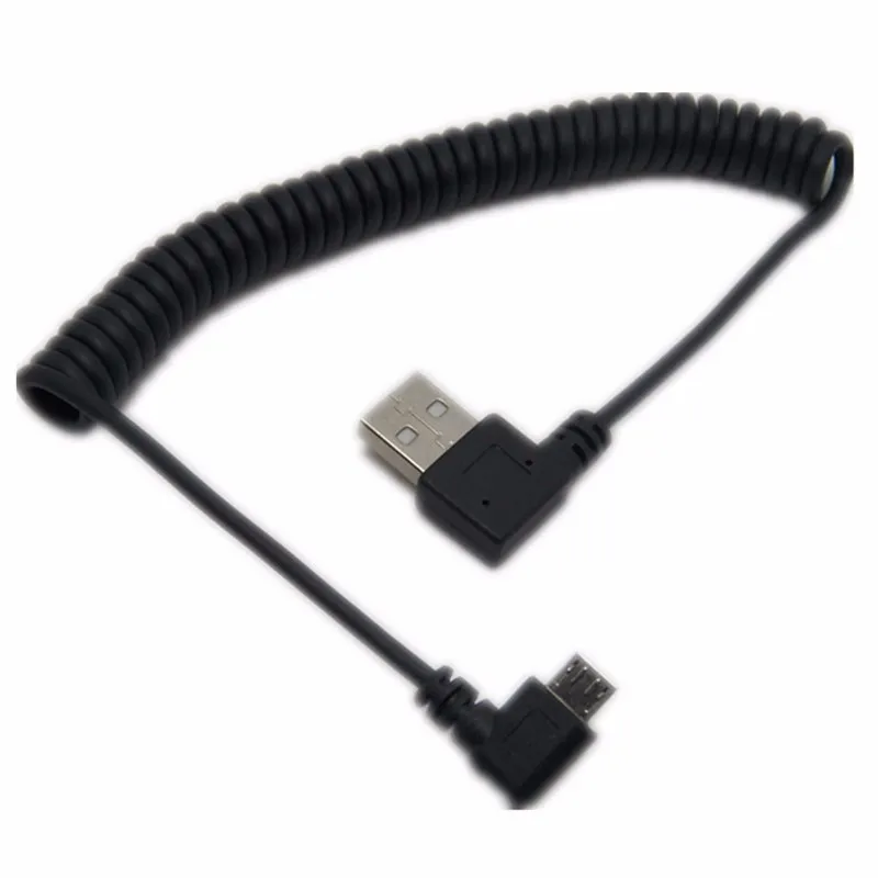 Comprar Cable de datos de carga USB de 90 grados A macho a Micro USB, línea de resorte retráctil curva izquierda para teléfonos Samsung oppo huawei Mobile