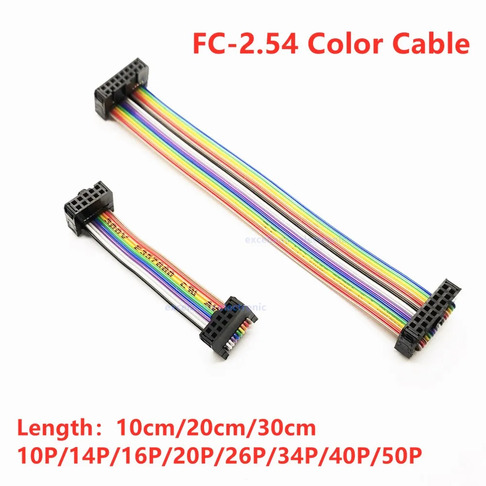 Comprar Cable de datos de cinta plana de Color para cabezal de caja IDC DC3, 2 piezas, 2,54 MM, FC-10/14/16/20/40/50Pin, 10/20/30CM, JTAG ISP