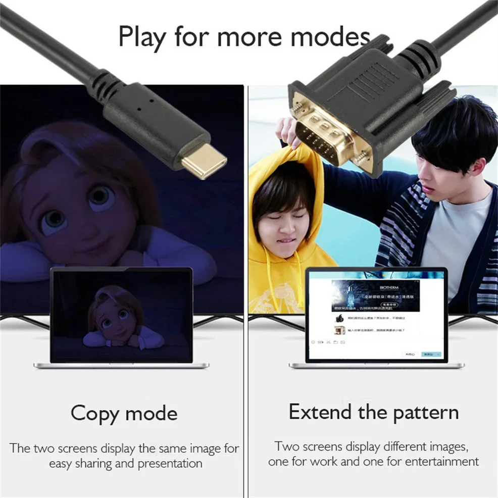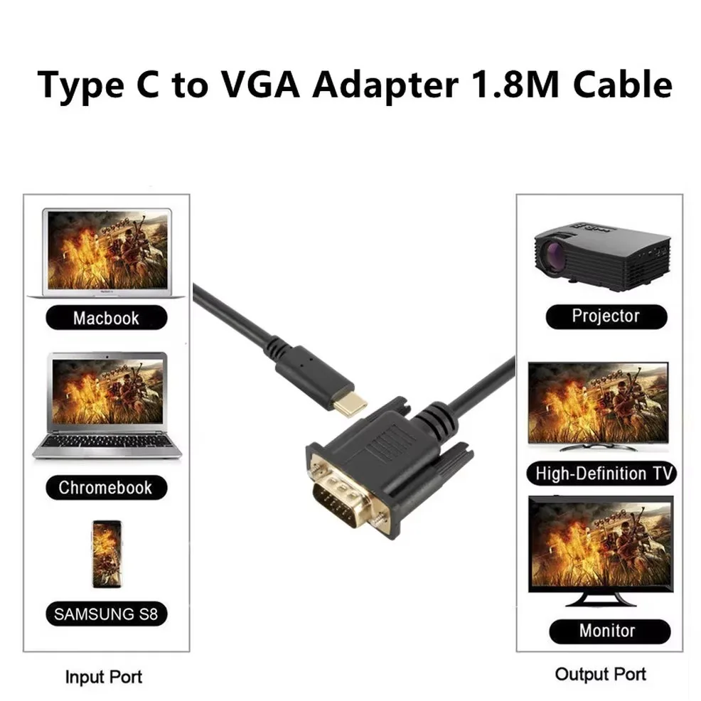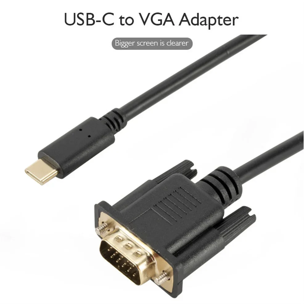 Comprar Cable de datos de conversión de 1080P Tipo C a VGA tipo C, Cable de conversión para computadora portátil, proyector de Video externo UHD, 1,8 M tipo C a VGA