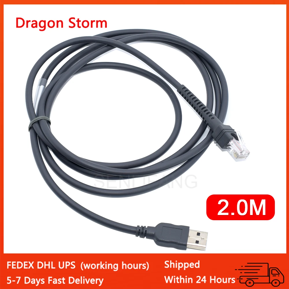Cable de datos del escáner de código de barras, escáner USB a RJ48 RJ50 de 2M para LS1203 LS2208 LS4208 LS3008 CBAU01-S07ZAR