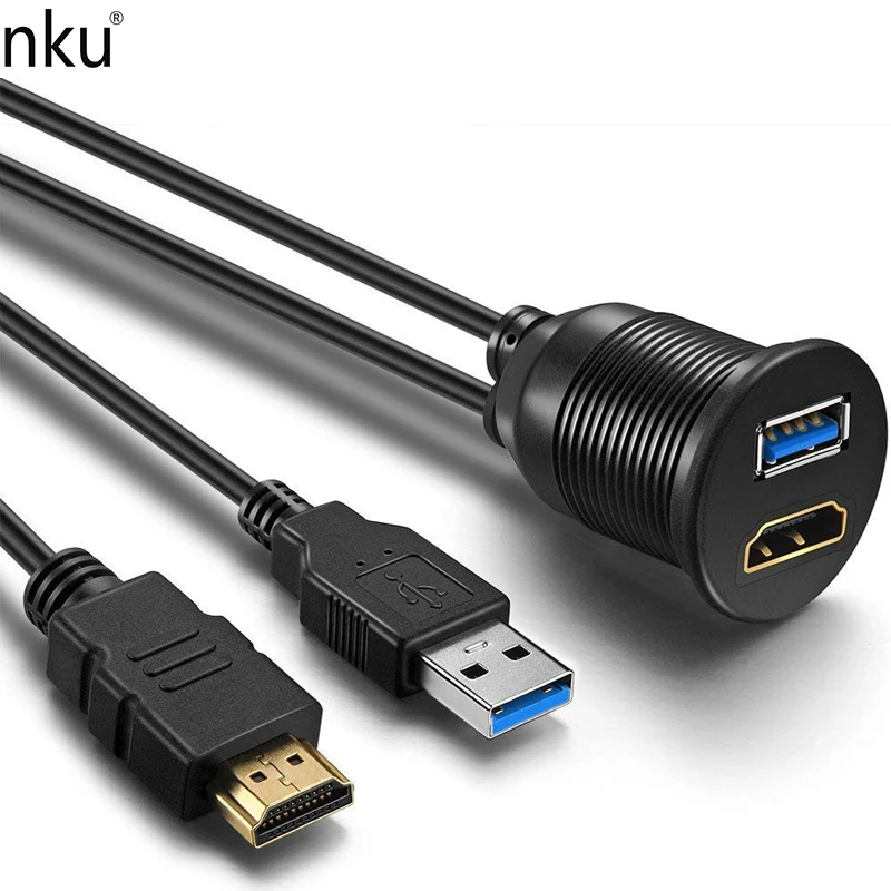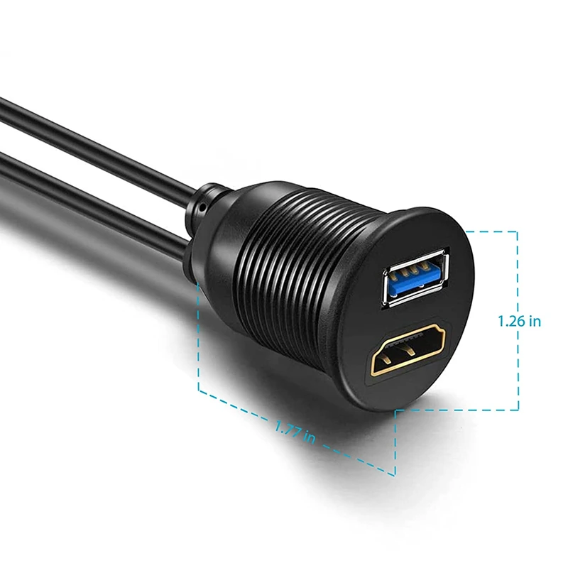 Comprar Cable de datos de extensión HDTV USB 3,0/2,0 y 4K, Panel de montaje empotrado para coche, yate, barco, motocicleta, tablero, impermeable, 1m