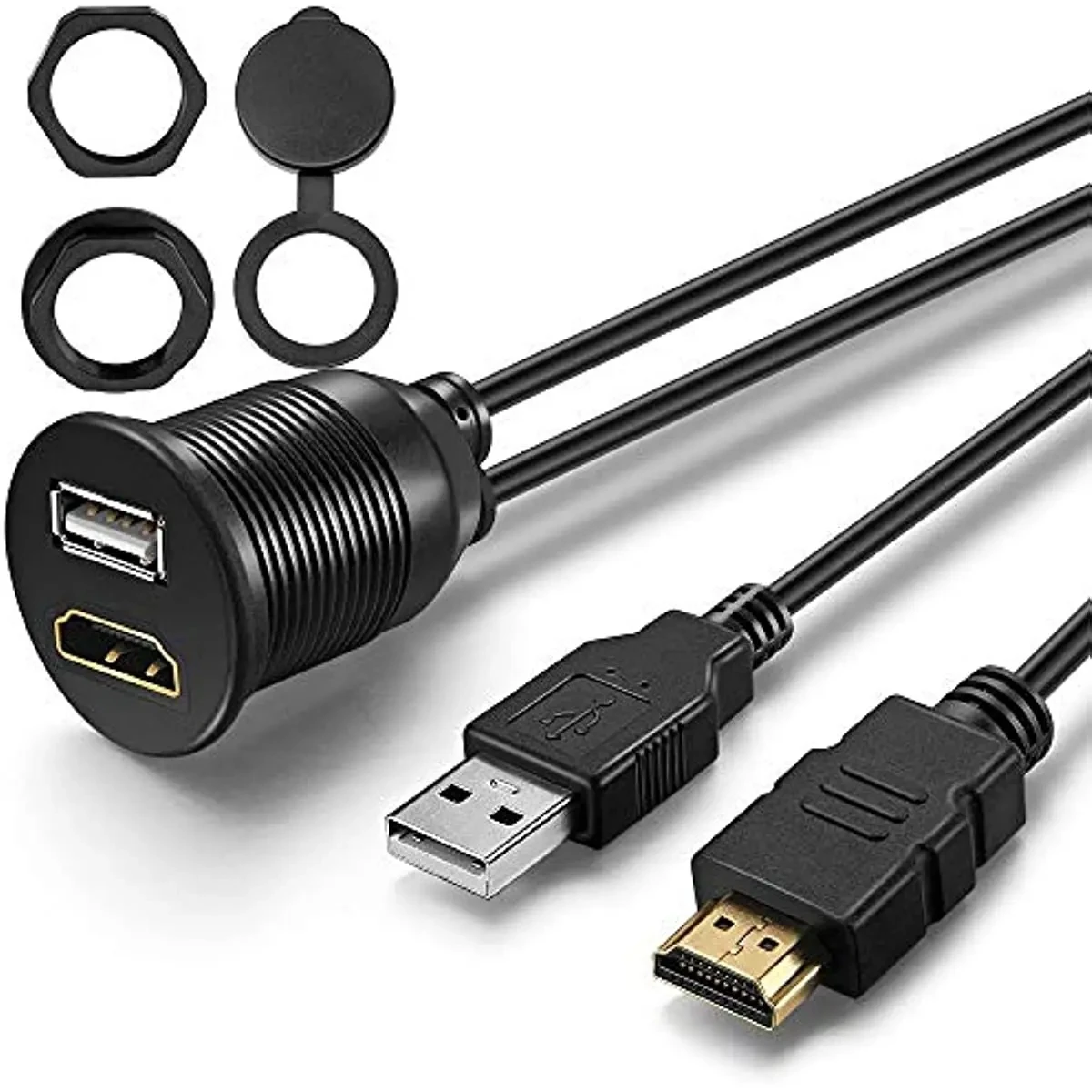 Comprar Cable de datos de extensión HDTV USB 3,0/2,0 y 4K, Panel de montaje empotrado para coche, yate, barco, motocicleta, tablero, impermeable, 1m