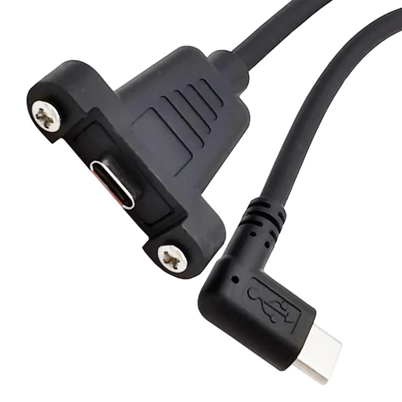 Comprar Cable de datos de extensión macho a hembra, cable USB C tipo C de 30CM, 90 grados, ángulo recto, con agujero de tornillo de panel, 480Mbps