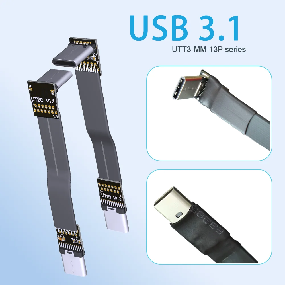 Comprar Cable de datos de extensión plana FFC USB 3,1 Gen 2 tipo C a tipo C, Cable de datos de 10G plegable de 90 grados, USB C macho, Cable de fotografía aérea FPC FPV