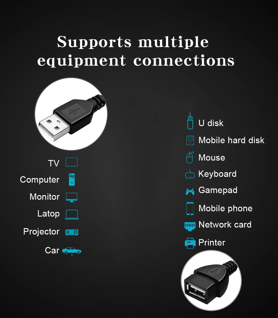 Cable de extensión USB para resolver el problema de los usuarios de escritorio que conectan todo en el escritorio Admite conexión de múltiples dispositivos La carga del teléfono se puede extender para admitir la conexión de disco U, teclado, mouse, lectores de tarjetas, impresoras, cámaras, disco duro móvil para extender el uso de computadoras.Con anillo magnético, el anillo magnético es la función de interferencia antielectromagnética para reducir la pérdida de transmisión.