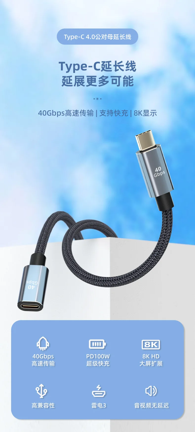 Este cable USB4 puede alcanzar una tasa de transferencia de datos de hasta 40Gbps, la velocidad de transmisión es dos veces más rápida que Thunderbolt3.