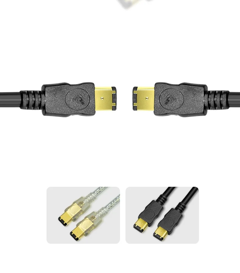 ResaltarCable de alta velocidad FireWire Gold, macho de 6 pines/6 pines;Proporciona velocidades de transferencia de datos de hasta 400 Mbps;El doble blindaje Premium minimiza la interferencia de ruido de línea;Los conectores chapados en oro de 24K aseguran una transferencia de señal óptima;Garantía de por vida;