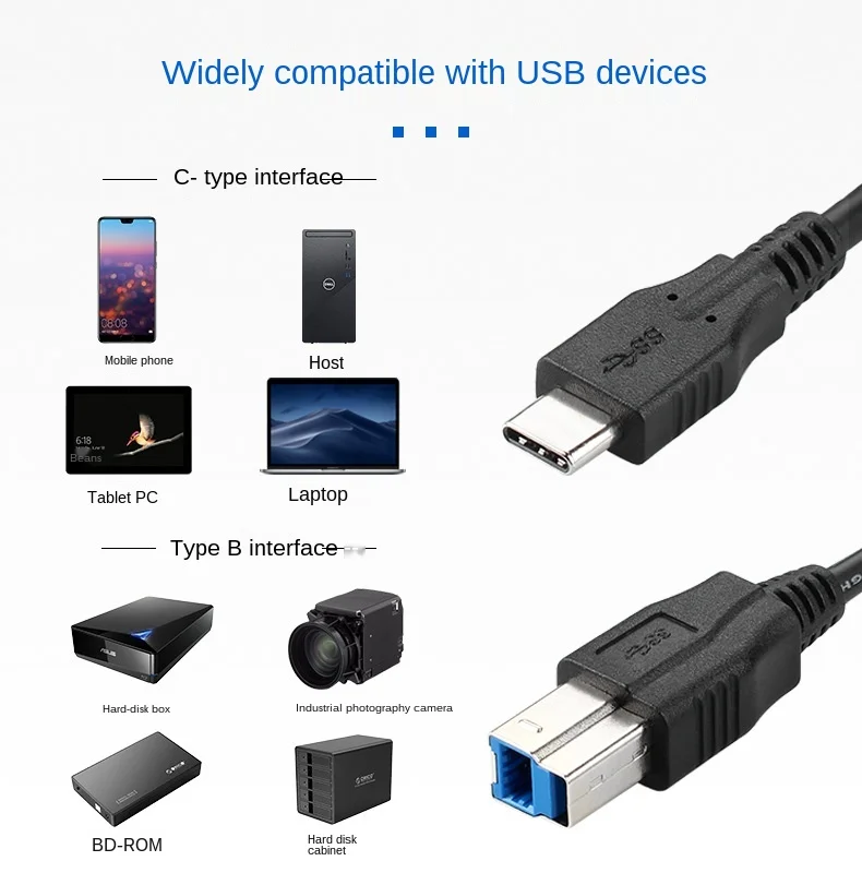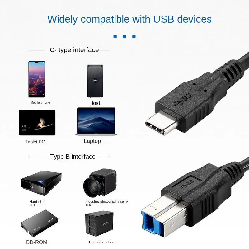 Comprar Cable de datos para impresora Industrial, Cable de conexión macho tipo C a B con puerto cuadrado y núcleo de cobre puro 3,1, venta al por mayor