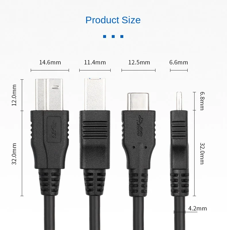 Cable de datos de impresora USB 3,1 núcleo de cobre puro Puerto cuadrado Cable de Cámara Industrial tipo C A B Cable de conexión macho al por mayor