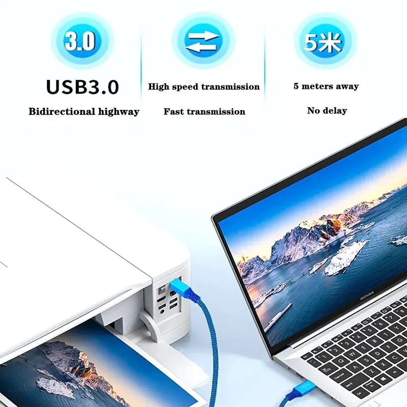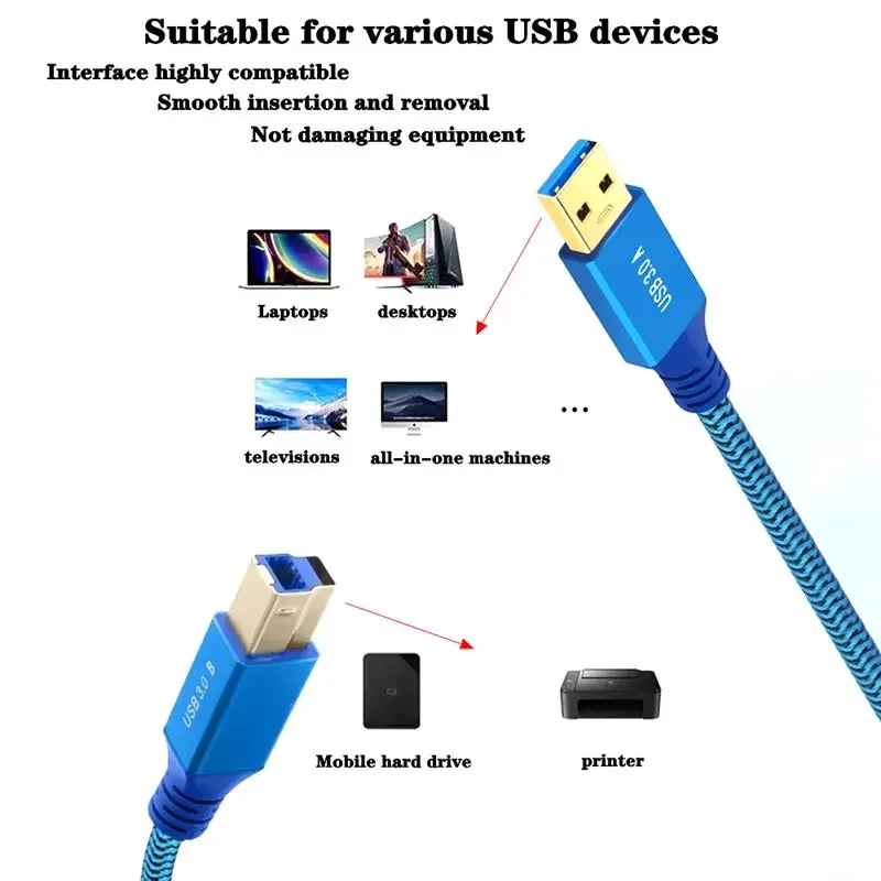 Cable de datos de impresora USB3.0 A macho a B macho con carcasa de malla, transmisión de computadora de alta velocidad de cobre puro, puerto cuadrado de conexión de computadora de alta velocidad, 0,3 M-3 M;