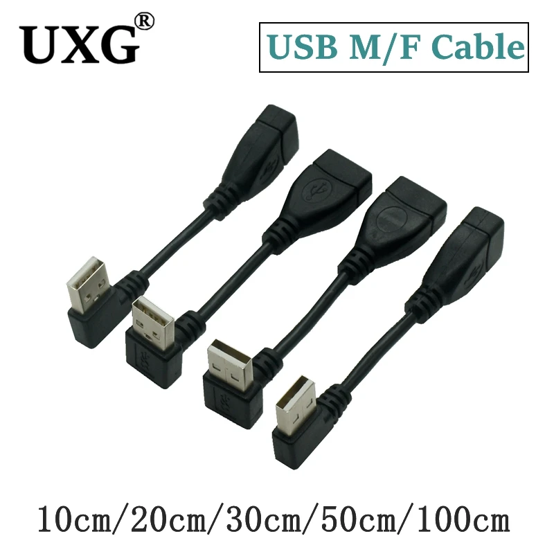 Comprar Cable de datos de línea larga macho a hembra, Cable corto M/f extendido USB de 20cm y 50cm, 90 grados, cabeza recta, curva derecha
