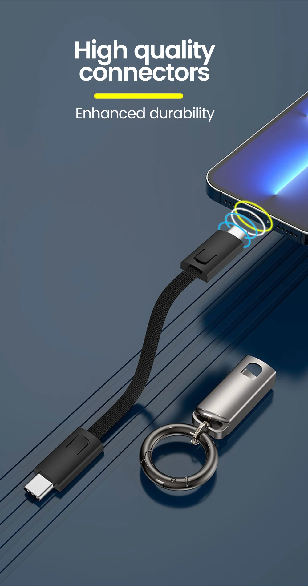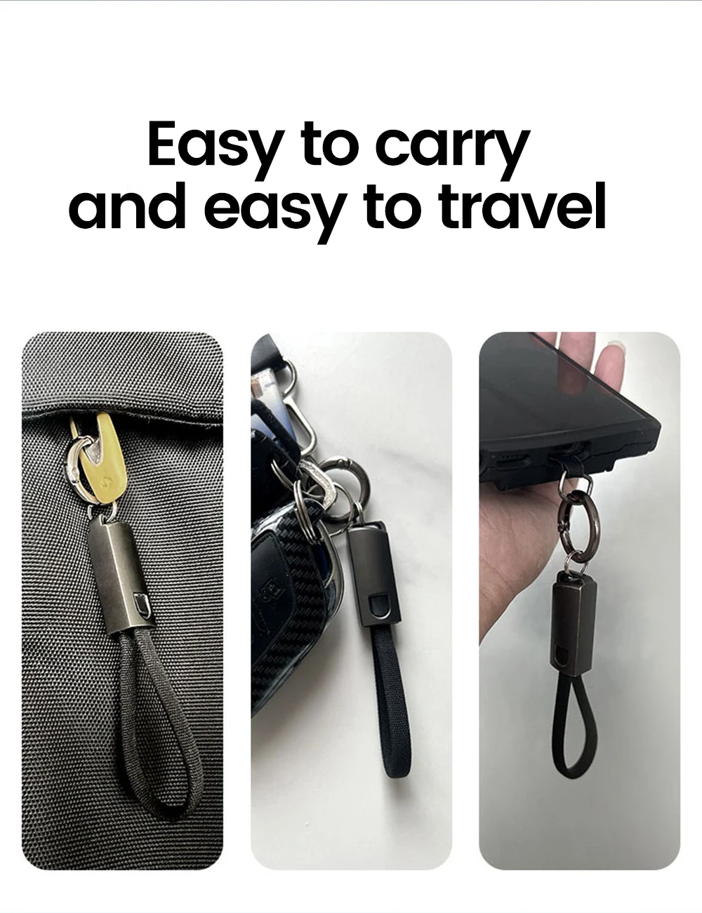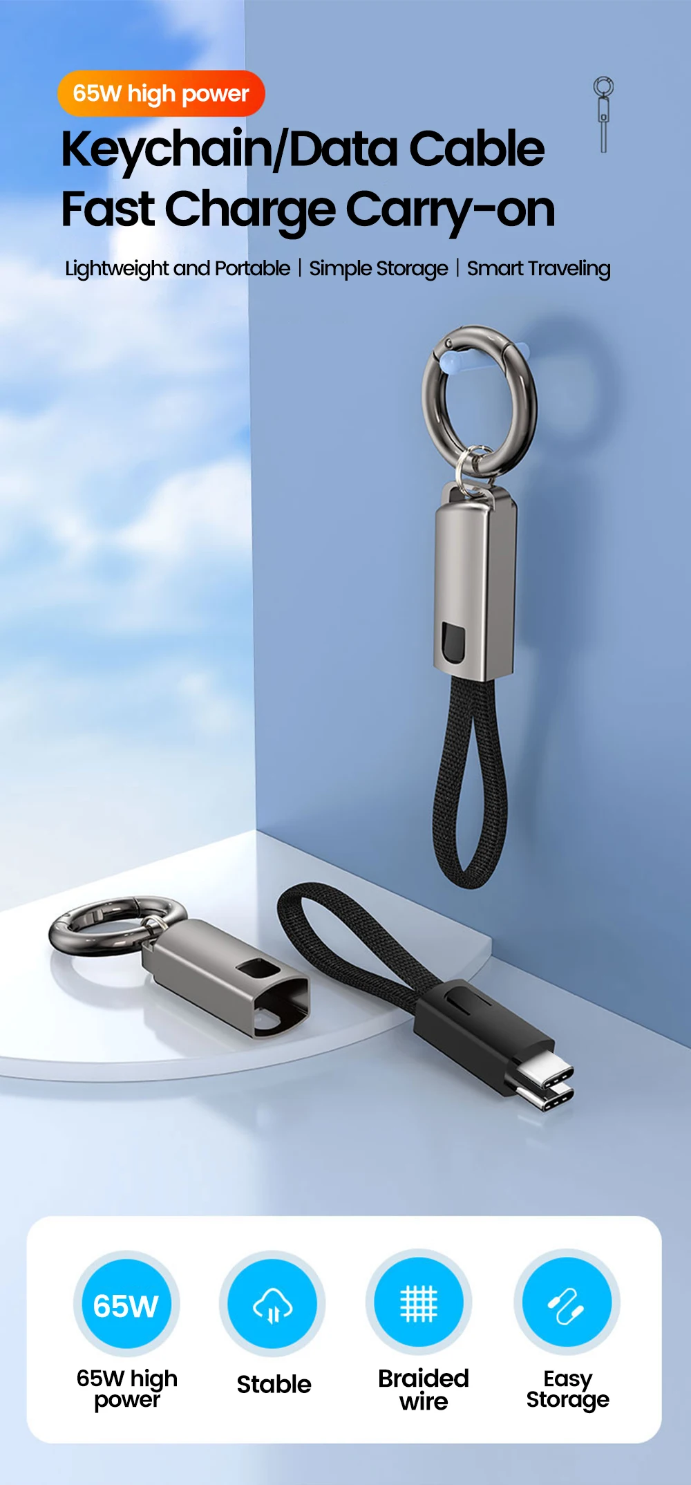 Cable de datos de llavero de 10CM PD 65W tipo C a tipo C Cable de carga rápida para iphone 15 Samsung Xiaomi Huawei Cable corto de banco de energía