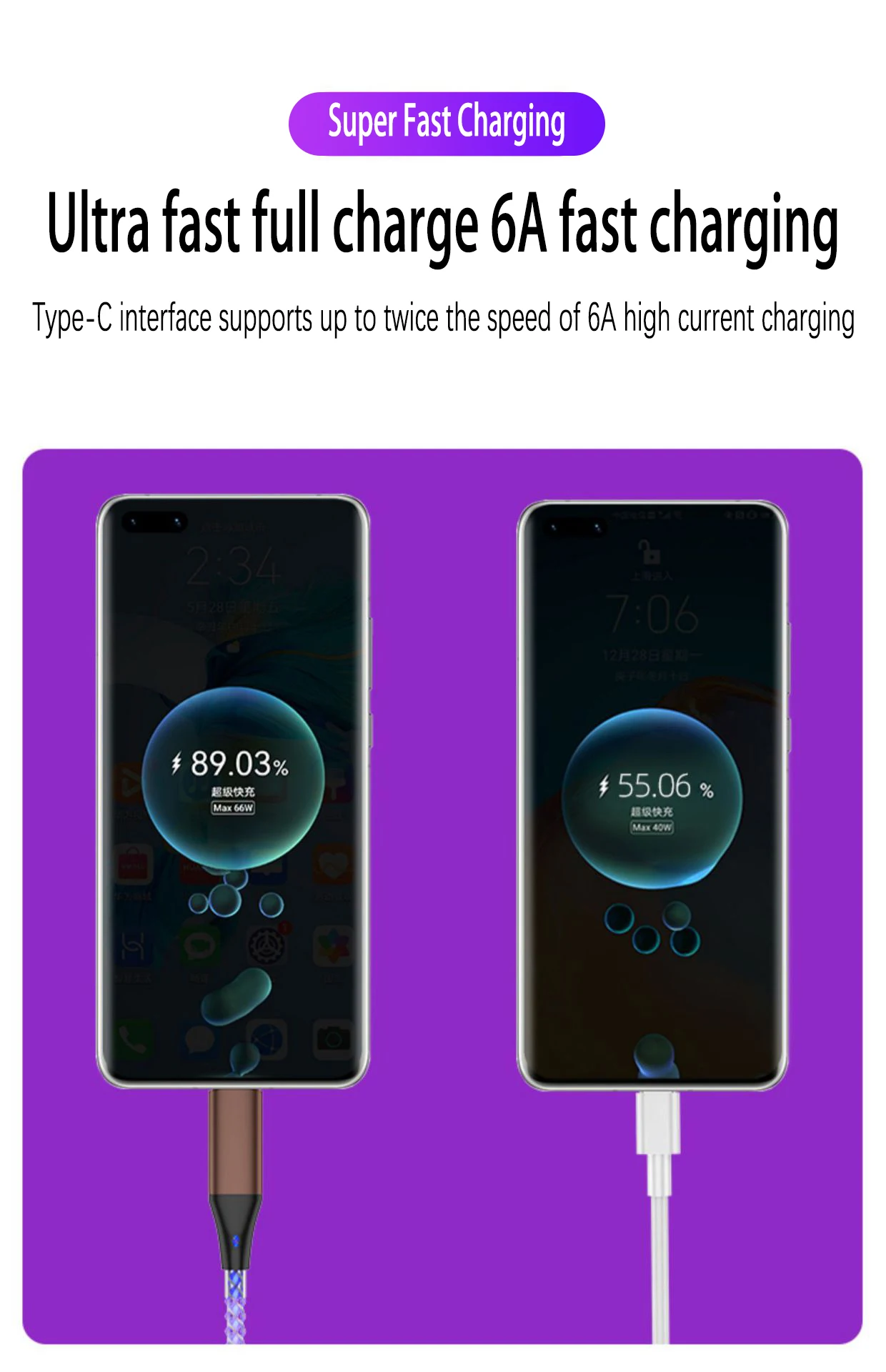 Cable de datos luminoso colorido de carga súper rápida UTHAI YO2 6A adecuado para iPhone Huawei Xiaomi One Drag tres cables de carga