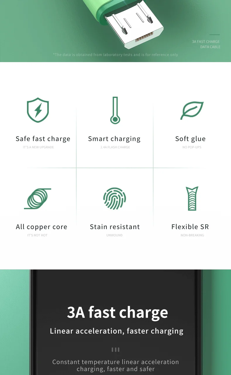 Comprar Cable de datos Micro USB de carga rápida LED 3A para Samsung Xiaomi Huawei HTC OPPO VIVO V8 Cable USB para cargador de teléfono móvil