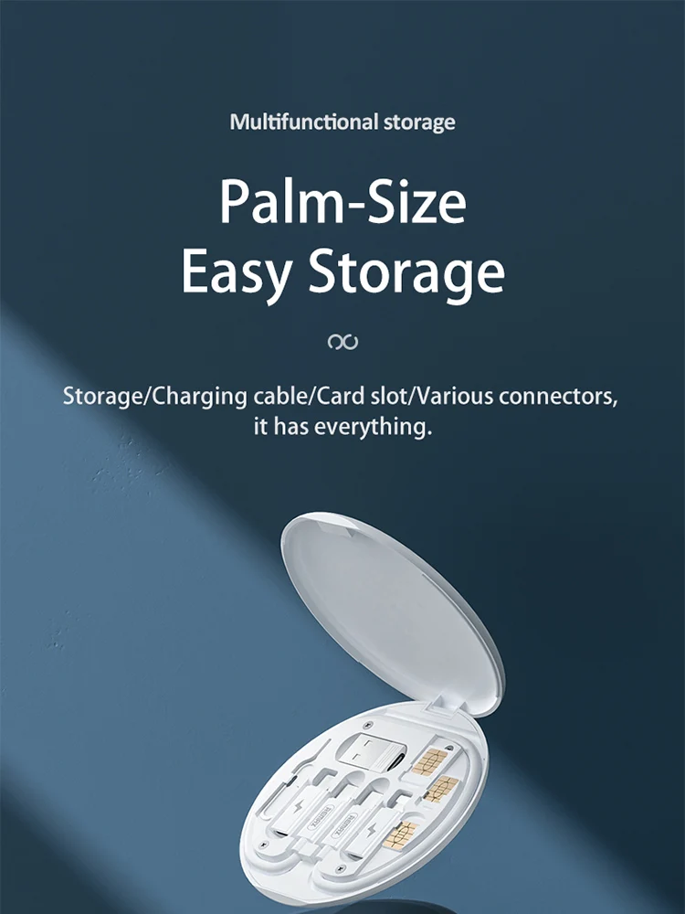 Es una caja de almacenamiento conveniente para varios tipos de interfaces, tarjetas SIM, cable de datos. También viene con un PIN de expulsión y 3 ranuras para tarjetas, que puede almacenar después de recoger la tarjeta para evitar la pérdida de la tarjeta SIM. (Las tarjetas NO están incluidas).
