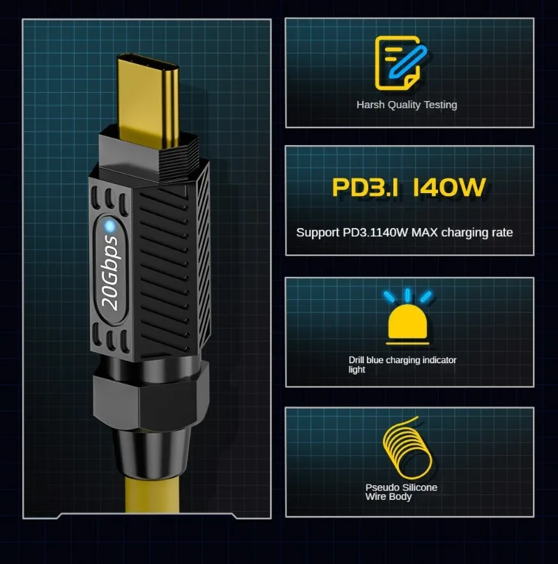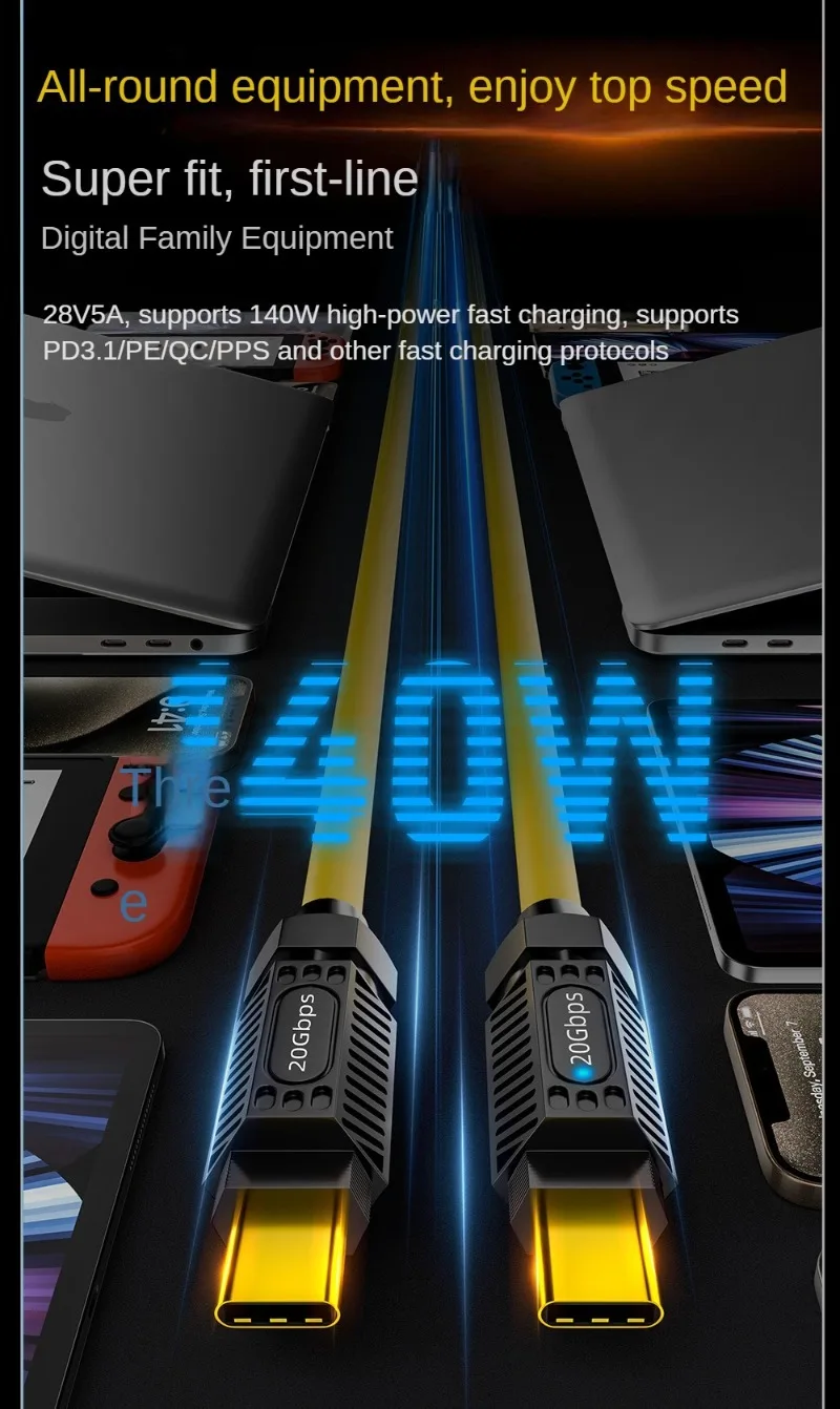 Comprar Cable de datos portátil USB C, Cable de entrega de energía de 140W, Cable de transmisión de datos de carga en ayuno, Cable de Audio y Video 8K